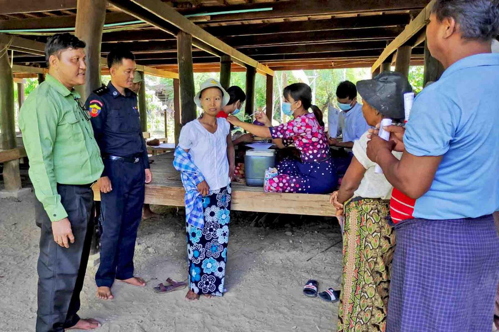 ထိုနောက် မြို့နယ်စီမံအုပ်ချုပ်ရေးအဖွဲ့ဥက္ကဋ္ဌနှင့် ဌာနဆိုင်ရာ တာဝန်ရှိသူများအဖွဲ့က မြို့နယ်ကျန်းမာရေးဦးစီးဌာနနှင့် ကျေးလက်ကျန်းမာရေးဌာနတို့မှ ဒေသခံကျေးလက်နေပြည်သူများကို ကိုဗစ် - ၁၉ မျိုးကွဲသစ် အိုမီခရွန်ရောဂါ ကင်းဝေး စေရေး Booster Dose ထပ်ဆောင်းကာကွယ်ဆေး ထိုးနှံဆောင်ရွက်ပေးနေမှုအား ကြည့်ရှုအားပေးကြီး ကာကွယ်ဆေး လာရောက်ထိုးနှံသူများကို ဆေးထိုးနှံပြီး အသိအမှတ်ပြုအထောက်အထားများ ပေးအပ်ခဲ့ကြကြောင်း သိရသည်။