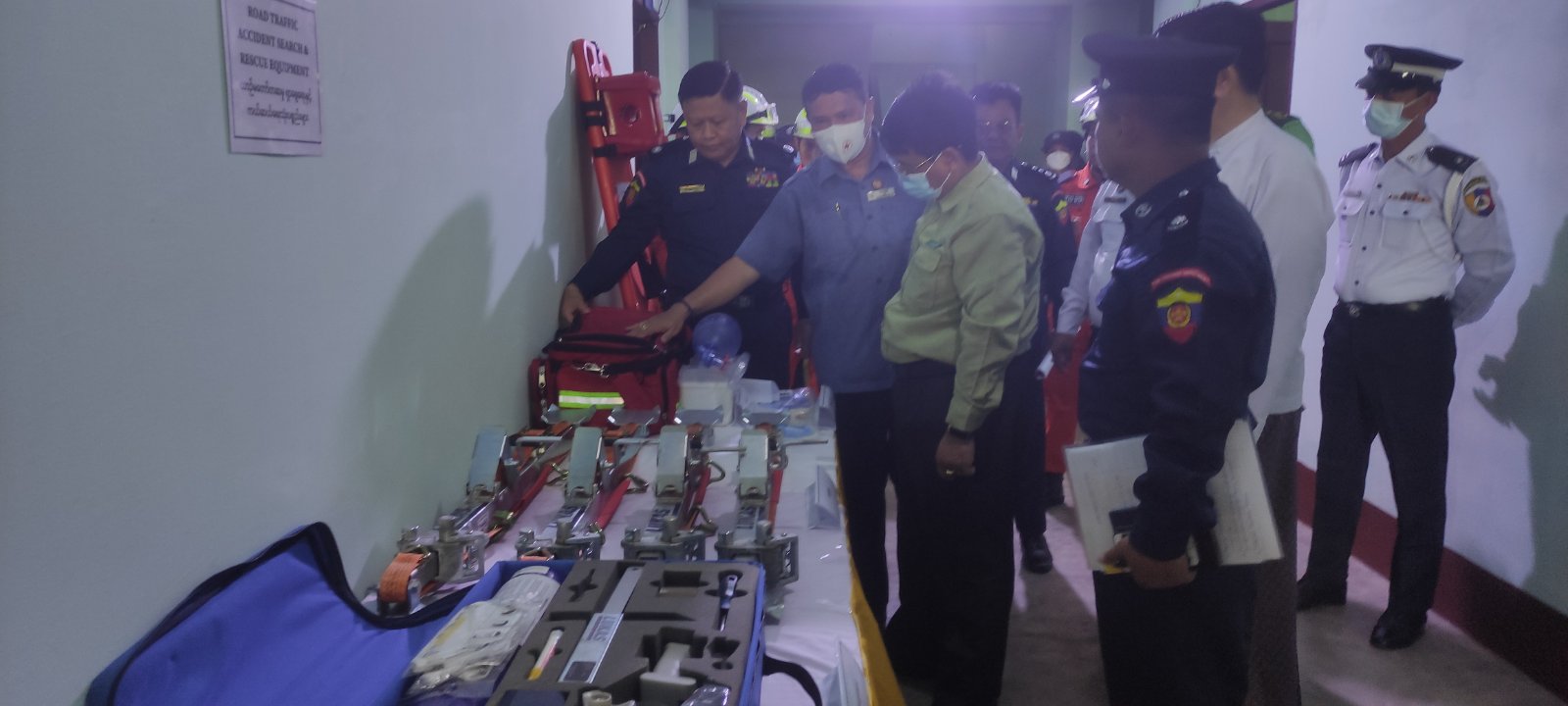 ထို့နောက်သင်တန်းသားများအား ရင်းရင်းနှီးနှီးလိုက်လံနှုတ်ဆက်၍ အားပေးစကားပြောကြားကာ အမှတ်တရစုပေါင်းဓာတ်ပုံရိုက်ကူးခဲ့ကြသည်။ ထို့နောက်ပြခန်းအတွင်း ခင်းကျင်းပြသထားသော ခေတ်မီမီးငြိမ်းသတ်ရေးနှင့် ရှာဖွေကယ်ဆယ်ရေးအထောက်အကူပစ္စည်းများအား ဧည့်သည်တော်များက ကြည့်ရှု့ကြရာ ခရိုင်မီးသတ်ဦးစီးမှူးနှင့် တာဝန်ရှိသူများက လိုက်လံရှင်းလင်းပြသကြသည်။