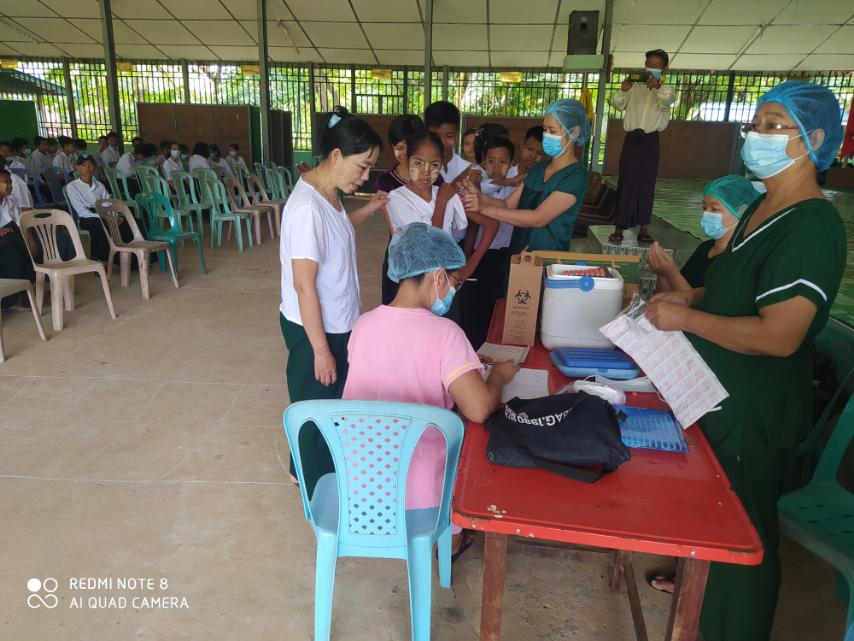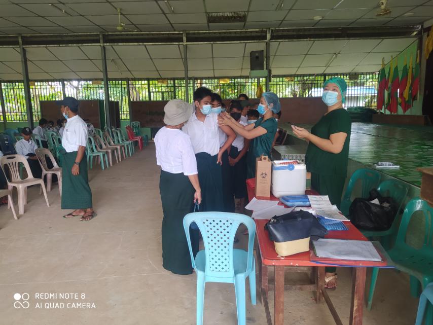 အဆိုပါ ကိုဗစ်-၁၉ ရောဂါကာကွယ်ဆေး ထိုးနှံပေးခြင်းကို မြို့နယ်ကျန်းမာရေးဦးစီးဌာနမှ ကျန်းမာရေးဝန်ထမ်းများ၊ ကျောင်းအုပ်ဆရာမကြီးနှင့် ဆရာ၊ ဆရာမများ၊ တာဝန်ရှိသူများက လိုအပ်သည်များကို ပူးပေါင်းဆောင်ရွက်ပေးခဲ့ကြောင်း သိရသည်။