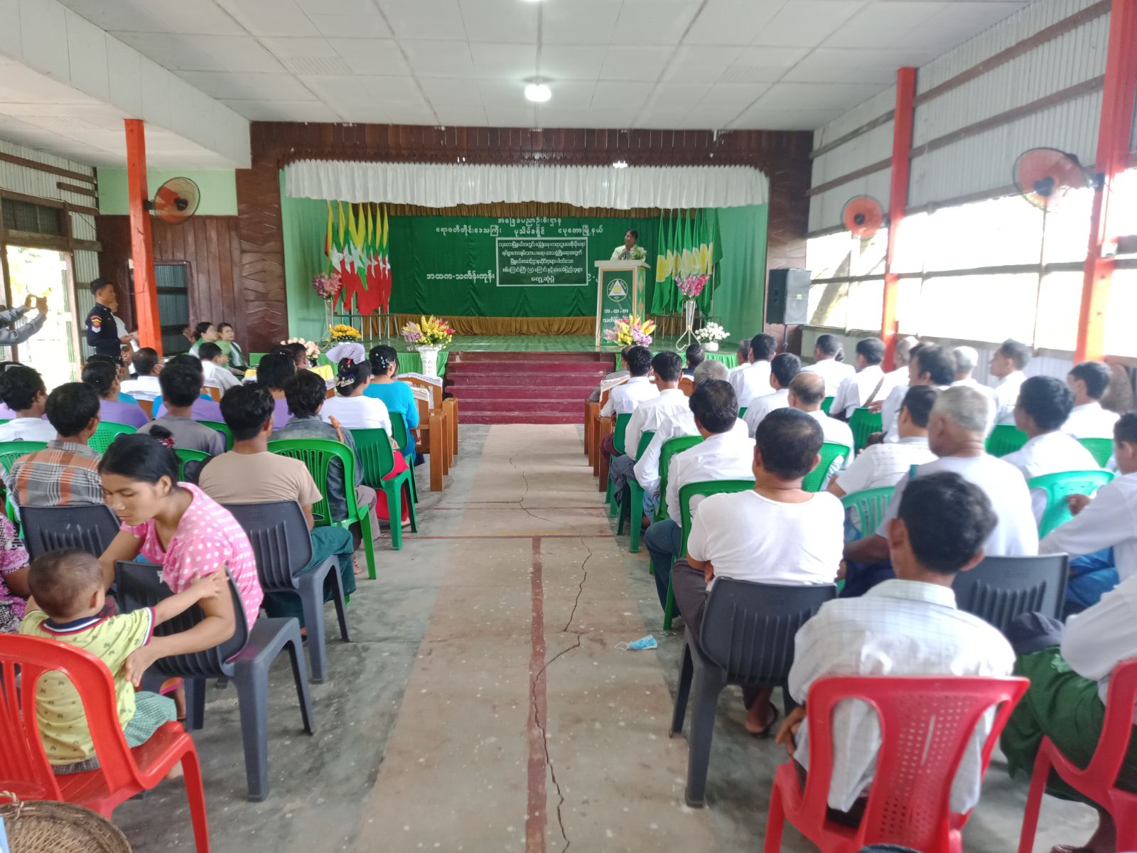 အခမ်းအနားတွင်း မြို့နယ်စီမံအုပ်ချုပ်ရေးအဖွဲ့ဥက္ကဋ္ဌ ဦးကျော်သူက ဆွေးနွေးပြောကြာရာတွင် ဒေသတွင်းလုံခြုံရေး တည်ငြိမ်အေးချမ်းရေး၊ ဆီထွက်သီးနှံများ တိုးချဲ့စိုက်ပျိုးရေး၊ ကိုဗစ်-၁၉ ကာကွယ်ဆေး ရာနှုန်းပြည့်ထိုးနှံရေးတို့ကို ဆွေးနွေးပြောကြားခဲ့ပြီး၊ အတွင်းရေးမှူး၊ မြန်မာနိုင်ငံရဲတပ်ဖွဲ့ရဲမှူး မြင့်ရွှေက ပြည်သူ့လုံခြုံရေးအဖွဲ့များ ဖွဲစည်းထားရှိမှု အခြေအနေနှင့် လုပ်ငန်းတာဝန်များ ဆောင်ရွက်မှုနှင့် ဒေသတွင်းလုံခြုံရေးနှင့် တရားဥပဒေစိုးမိုးရေးတွင် ပူးပေါင်းဆောင်ရွက်ရန် ဆွေးနွေးပြောကြားပါသည်။ အဖွဲ့ဝင်(၃) ဦးမောင်မောင်လွင်က ဆွေးနွေးပြောကြားရာတွင် အိမ်ထောင်စုစာရင်းပုံစံ ၆၆/၆ များအား Door to Door စနစ်ဖြင့် ကွင်းဆင်းစစ်ဆေးဆောင်ရွက်မှု အခြေအနေနှင့် လူဦးရေစာရင်းများ မှန်ကန်မှုရရှိစေရေး ဆွေးနွေးပြောကြားသည်။ ဆက်လက်ပြီး မြို့နယ်မီးသတ်ဦးစီးဌာန၊ ဦးစီးအရာရှိ ဦးမင်းအောင်က ဆွေးနွေးပြောကြားရာတွင် သဘာဝဘေးအန္တရာယ်များ ကျရောက်ဖြစ်ပွားမှု မရှိစေရေးအတွက် ကြိုတင်ကာကွယ်ရေး၊ သဘာဝဘေးဖြစ်ပွားလာပါက စုပေါင်းကာကွယ် ဖြေရှင်းရေး ဆွေးနွေးပြောကြားသည်။