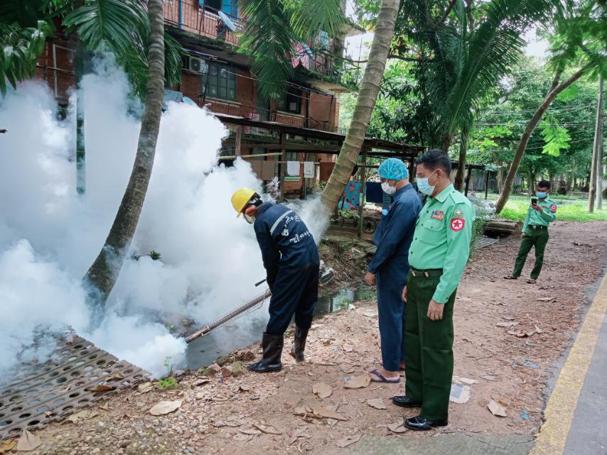 ထိုသို့ ကြိုတင်ကာကွယ်မှု ဆောင်ရွက်ရာတွင် ဌာနမှူး ဒေါက်တာမြင့်သန်းထွန်း ဦးဆောင်၍ လ/ထဌာနမှူး ဒေါက်တာရွှေဘော် ကြီးကြပ်သော လှိုင်မြို့နယ်၊ မရမ်းကုန်းမြို့နယ်၊ အင်းစိန်မြို့နယ်၊ လှိုင်သာယာ(အရှေ့ပိုင်း)မြို့နယ်အဖွဲ့တို့ ပူးပေါင်း၍ အဘိတ်ဆေးခတ်ခြင်း၊ ခြင်ဆေးမှုတ်ခြင်း၊ ကလိုရင်းဆေးရည်ဖျန်းခြင်းများ ဆောင်ရွက်ခဲ့ကြောင်း သတင်းရရှိသည်။