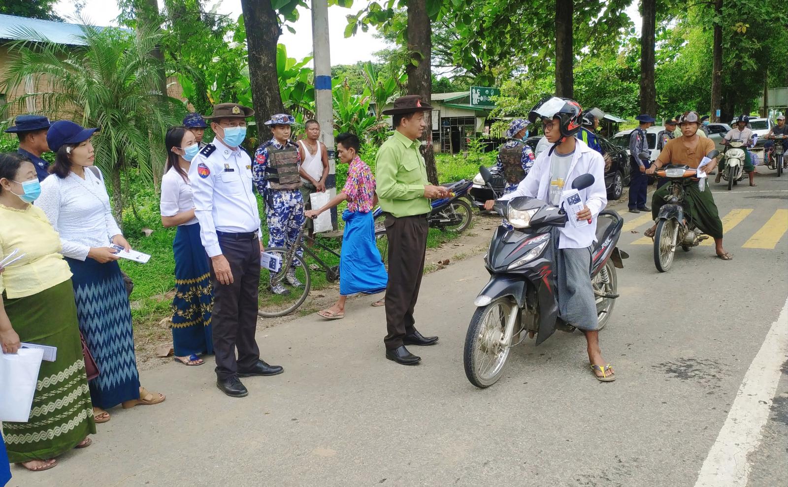 အဆိုပါ ယာဉ်စည်းကမ်း၊ လမ်းစည်းကမ်း အန္တရာယ်ကင်းစေရေး အသိပညာပေး ဆောင်ရွက်ရာတွင် မြို့နယ်စီမံအုပ်ချုပ်ရေးအဖွဲ့ဥက္ကဋ္ဌ ဦးသန်းချစ်အေးနှင့်အဖွဲ့ဝင်များ၊ မြို့နယ်စီမံအုပ်ချုပ်ရေးအဖွဲ့ဝင် ဗိုလ်မှူး မျိုးမြင့်အောင်၊ မြို့နယ်ရဲတပ်ဖွဲ့မှူး ရဲမှူးအောင်ကိုကို၊ ဒုမြို့နယ်ရဲတပ်ဖွဲ့မှူး ဒုရဲမှူး ဝင်းထွန်းနိုင်၊ မြို့မရဲစခန်းမှူး ဒုရဲမှူး ညွှန့်အောင်တို့က ဦးဆောင်၍ မြို့နယ်ရဲတပ်ဖွဲ့ဝင်များနှင့် ဌာနဆိုင်ရာ တာဝန်ရှိသူများက အများပြည်သူသွားလာရာ မြို့အဝင်/ထွက် စစ်ဆေးရေးဂိတ်နှင့် လူစည်ကားရာ နေရာများတွင် ယာဉ်အန္တရာယ်ကင်းစေရန် ဆိုင်ကယ်စီးဦးထုပ်များ စနစ်တကျဆောင်း၍ စီးနင်းစေခြင်း၊ ယာဉ်လိုင်စင်၊ လူလိုင်စင်နှင့် နိုင်ငံသားစိစစ်ရေးကတ်ပြားများ ပါ မပါ စစ်ဆေးပြီး ယာဉ်အန္တရာယ် ကင်းရှင်းစေရန်အတွက် အသိပညာပေး ဟောပြောခဲ့သည်။