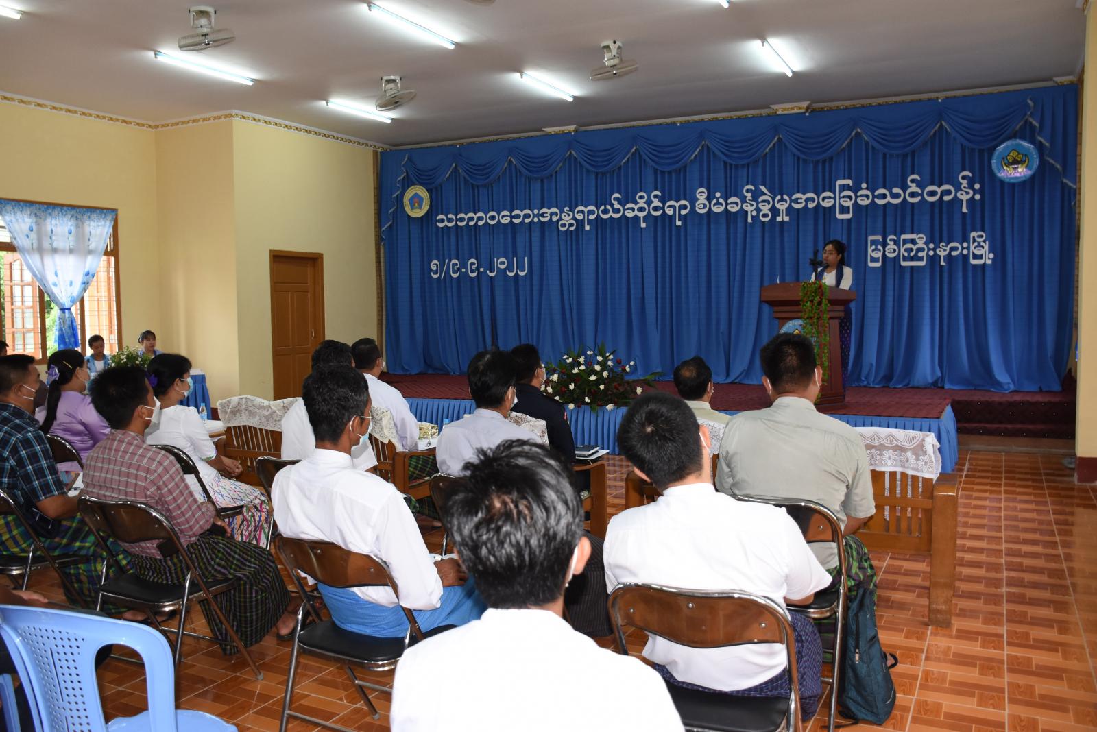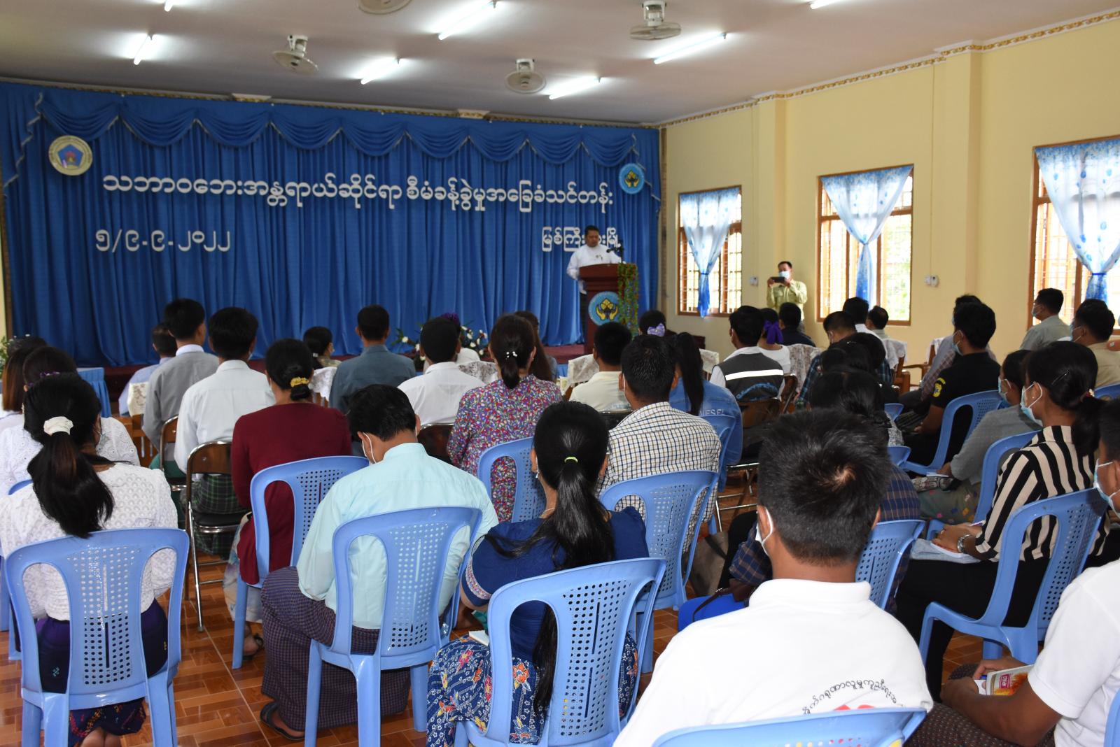 ထို့နောက် ပြည်နယ်ဘေးအန္တရာယ်ဆိုင်ရာစီမံခန့်ခွဲမှုဦးစီးဌာန၊ ပြည်နယ်ဦးစီးမှူး ဒေါ်လှကေ သီမာက (၅.၉.၂၀၂၂)ရက်နေ့မှ (၉.၉.၂၀၂၂)ရက်နေ့အထိ (၅)ရက်ကြာ ဖွင့်လှစ်သွားမည့် သဘာဝဘေးအန္တရာယ်ဆိုင်ရာ စီမံခန့်ခွဲမှုအခြေခံသင်တန်းနှင့် စပ်လျဉ်း၍ ရှင်းလင်းတင်ပြသည်။