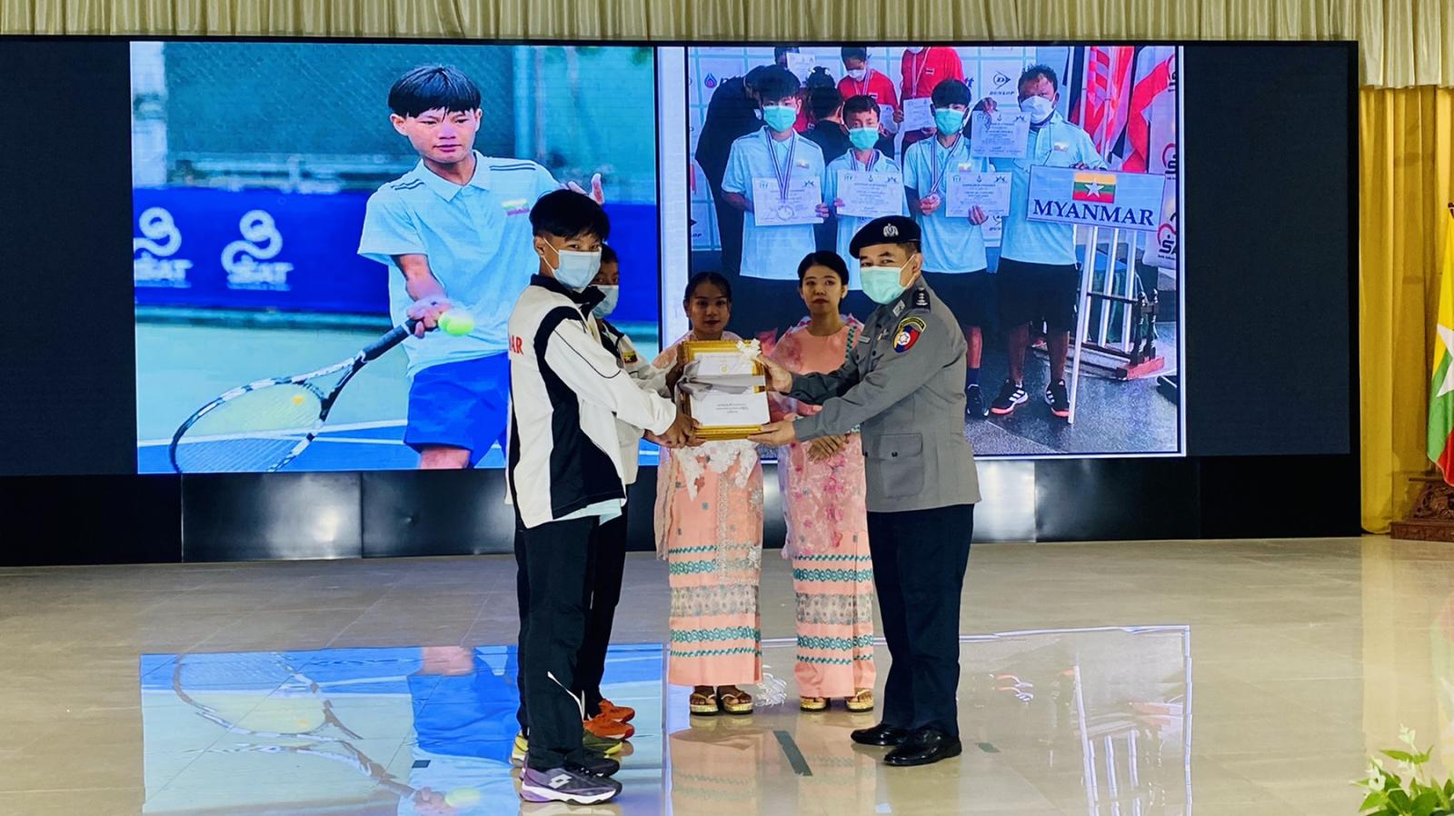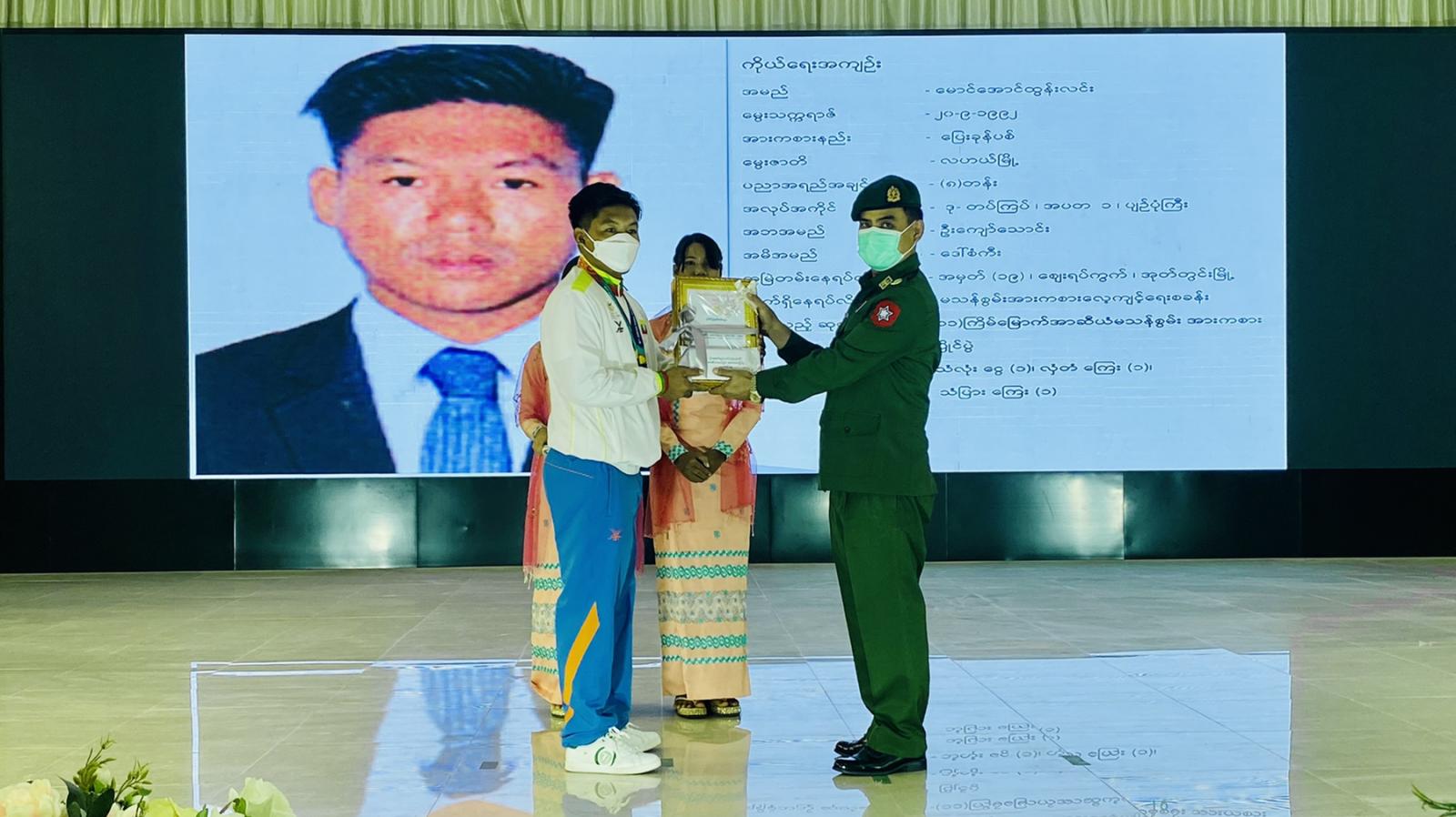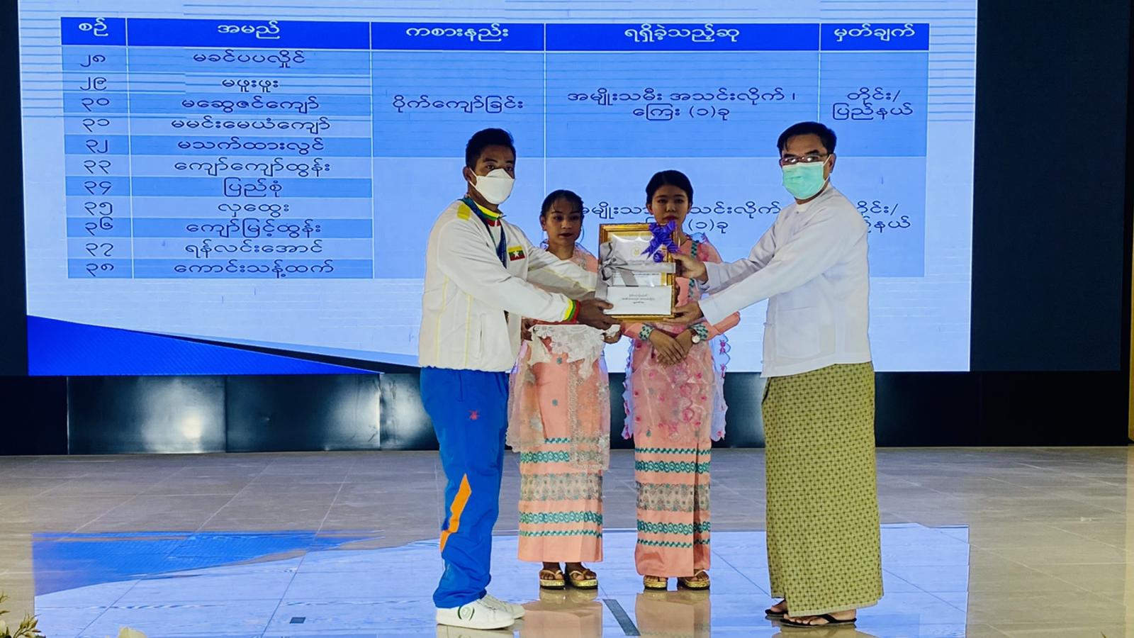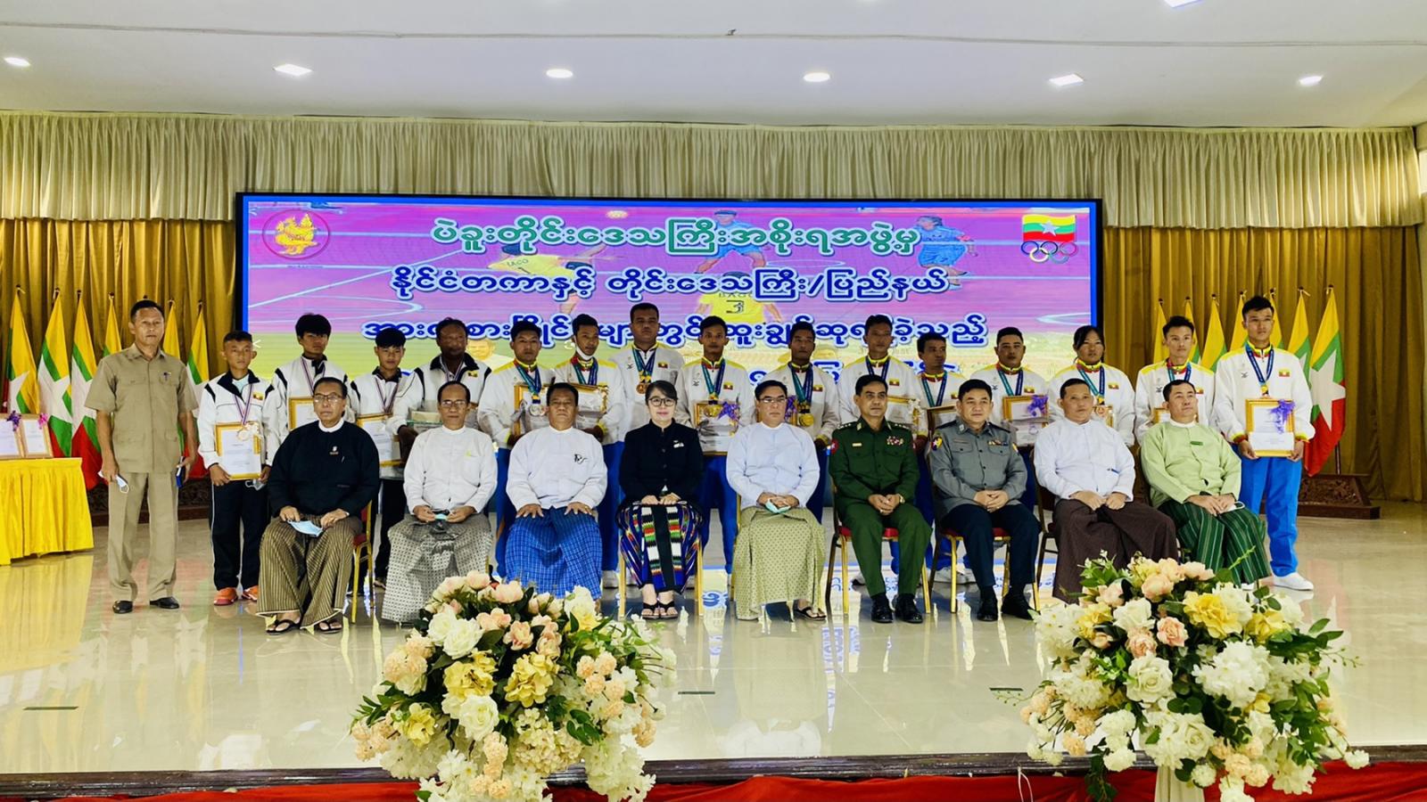 ထို့နောက် ဆုချီးမြှင့်ပွဲကို ဆက်လက်ကျင်းပရာ အင်ဒိုနီးရှားနိုင်ငံတွင် ကျင်းပပြုလုပ်သည့် (၁၁)ကြိမ်မြောက် အာဆီယံမသန်စွမ်း အားကစားပြိုင်ပွဲတွင် ပြေးခုန်ပစ်အားကစားနည်း၊ ထိုင်းနိုင်ငံ ဘန်ကောက်မြို့တွင် ကျင်းပပြုလုပ်သည့် အရှေ့တောင်အာရှအဆင့် လူငယ်တင်းနစ်ပြိုင်ပွဲနှင့် ပြည်နယ်နှင့် တိုင်းအဆင့်တွင် ရွှေတံဆိပ်၊ ငွေတံဆိပ်၊ ကြေးတံဆိပ် ရရှိခဲ့သူများအား တိုင်းဒေသကြီးအစိုးရအဖွဲ့ ဝန်ကြီးချုပ် ဦးမျိုးဆွေဝင်း၊ တိုင်းဒေသကြီး တရားလွှတ်တော် တရားသူကြီးချုပ် ဒေါ်လွင်လွင်အေးကျော်နှင့် တိုင်းဒေသကြီးအစိုးရအဖွဲ့ ဝန်ကြီးများမှ ဆုများအသီးသီး ချီးမြှင့်ခဲ့ကြသည်။