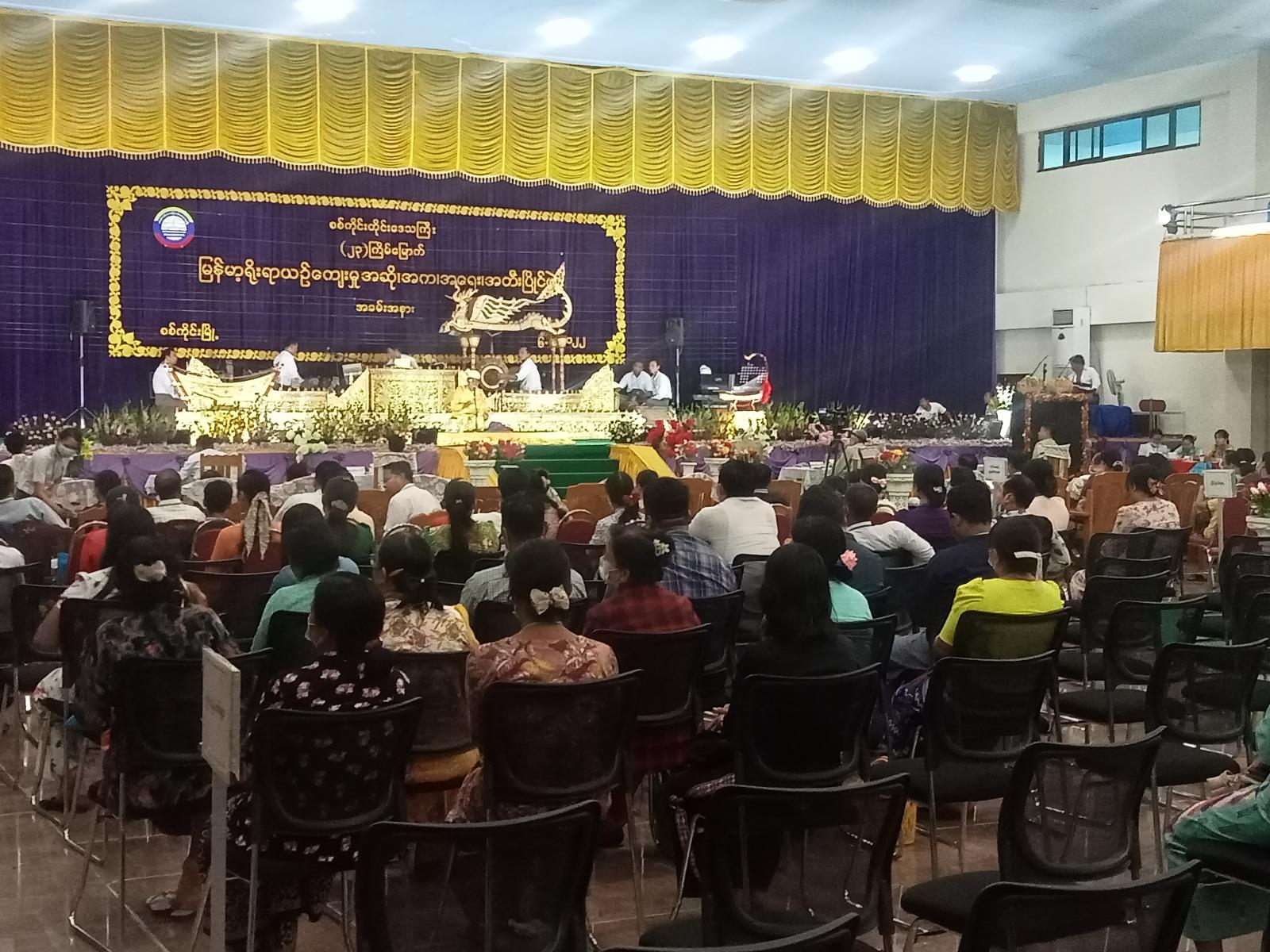ယနေ့ကျင်းပပြုလုပ်သည့် အဆို၊ အက၊ အရေး၊ အတီး ပြိုင်ပွဲ တတိယနေ့အဖြစ် “ ကွက်စိပ်ပြိုင်ပွဲနှင့် အရေးဘာသာရပ် သီဆိုချင်းတို့အား ဘွဲ့နှင်းသဘင်ခန်းမအတွင်း ကျင်းပပြုလုပ်ခဲ့ကြကြောင်း သိရသည်။