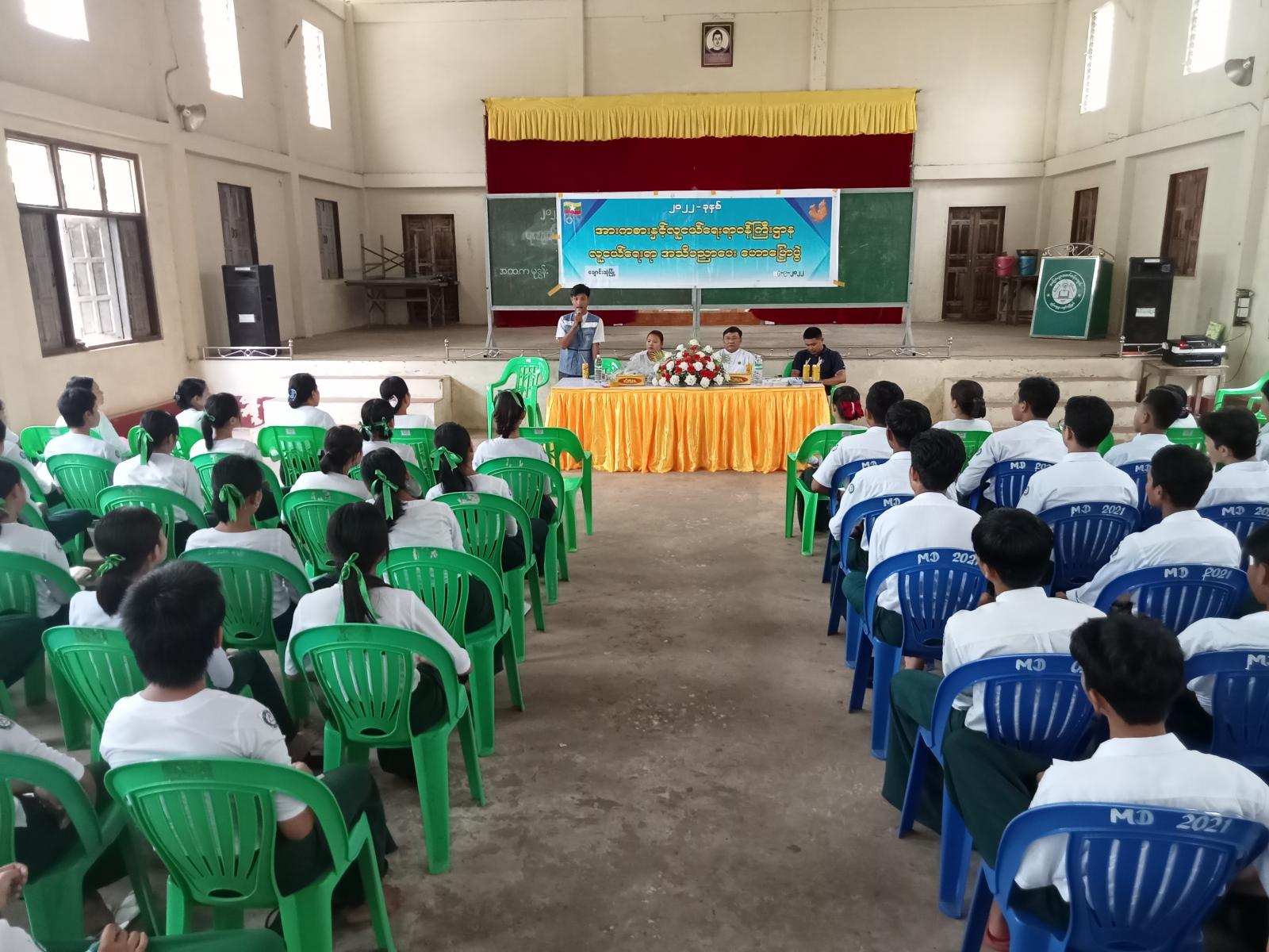 ရှေးဦးစွာ (အ.ထ.က) ကျောင်းအုပ်ဆရာကြီး ဦးသိန်းဟန်က အဖွင့်အမှာစကားပြောကြားပြီး (အား/ကာ)ဌာန ဦးစီးအရာရှိ ဒေါ်သက်ငုံဖူးက ဦးစီးဌာန၏ မျှော်မှန်းချက်ရည်မှန်းချက် အားကစားမှ အကျိုးပြုနိုင်သည့်အချက်များ အားကစားပြုလုပ်ခြင်းဖြင့် ရရှိမည့် အကျိုးကျေးဇူးများကိုလည်းကောင်း၊ မြို့နယ်ပြန်ကြားရေးနှင့်ပြည်သူ့ဆက်ဆံရေးဦးစီးဌာနမှ စာကြည့်တိုက်မှူး ဦးကျော်ကျော်အောင်က စာဖတ်ရှိန်မြှင့်တင်ရေးဖြင့် စာဖတ်ခြင်းဖြင့်ရရှိမည့် အကျိုးကျေးဇူးများအကြောင်းကိုလည်းကောင်း၊ (ဘေး/စီမံ)ဌာန ဦးကျော်ကျော်က သဘာဝဘေးနှင့်ပတ်သက်သည့် ဘေးအမျိုးအစား အကြောင်းအရာများကိုလည်းကောင်း၊ ဟောပြောခဲ့သည်။