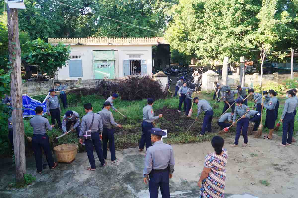 အဆိုပါ စုပေါင်းသန့်ရှင်းရေးဆောင်ရွက်ကြရာတွင် မြို့နယ်ရဲတပ်ဖွဲ့မှူး ရဲမှူးအောင်ကျော်ဦး၏ ဦးဆောင်မှုဖြင့် ရွှေဘုံသာနဂါးရုံစေတီတော်ရင်ပြင် သန့်ရှင်းသာယာလှပရေးအတွက် ရဲတပ်ဖွဲ့ဝင် (၄၅) ဦးတို့ စုပေါင်းပြီး စေတီတော်ဝင်း အတွင်း/အပြင်ရှိ ခြုံနွယ်ပင်များ၊ မြက်ပင်များနှင့် အမှိုက်သရိုက်များအား ရှင်းလင်းဖယ်ရှားပေးခဲ့ကြောင်း သိရသည်။