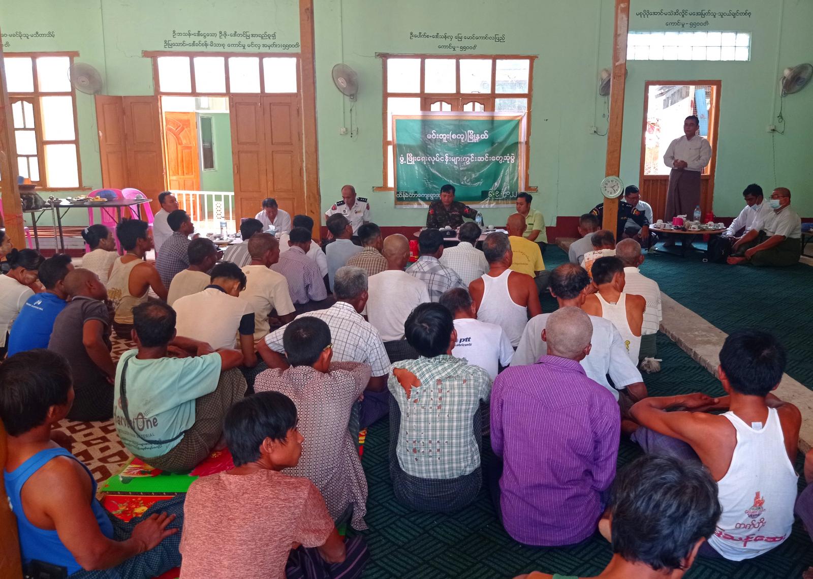ရှေးဦးစွာ မြို့နယ်စီမံအုပ်ချုပ်ရေးအဖွဲ့ အဖွဲ့ဝင် (၁) ဗိုလ်မှူး ဝင်းဇင်မိုးက နိုင်ငံတော်မှ ကျေးရွာနေ ပြည်သူများ၏ ပညာရေး၊ ကျန်းမာရေး၊ စိုက်ပျိုးရေး၊ မွေးမြူရေး စသည့် လုပ်ငန်းများကို ဘက်ပေါင်းစုံမှ ကူညီထောက်ပံ့မှုများ ပေးနေသကဲ့သို့ မိမိတို့ အဖွဲ့အနေဖြင့်လည်း ရပ်ကွက်နှင့်ကျေးရွာနေ ပြည်သူများ၏ လုံခြုံရေး၊ အေးချမ်းရေး၊ တရားဥပဒေစိုးမိုးရေးတို့ကို အစဉ် ဂရုတစိုက် အလေးထား ဆောင်ရွက်ပေးလျက် ရှိပါကြောင်း ကျေးရွာနေ ပြည်သူများကလည်း ဝိုင်းဝန်း ကူညီကြစေလိုကြောင်းတို့ကို ပြောကြားခဲ့သည်။