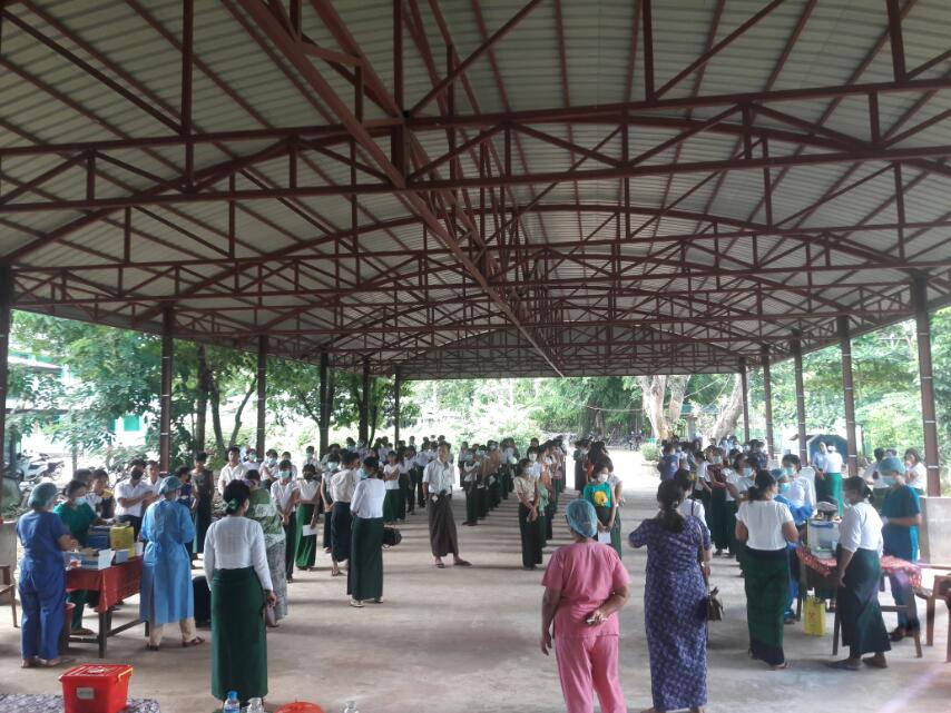 ထိုသို့ ကာကွယ်ဆေးထိုးနှံရာတွင်(ဒုတိယအကြိမ်) ကိုဗစ်-၁၉ ရောဂါ ကာကွယ်ဆေးထိုးနှံပြီး (၆)လပြည့်သူများအား (တတိယအကြိမ်) (Sinovac Vaccine)ကို ထိုးနှံပေးခြင်းဖြစ်ပြီး မြို့နယ်ပြည်သူ့ကျန်းမာရေး ဝန်ထမ်းများနှင့် ဆရာ/ဆရာမများက ကာကွယ်ဆေး လာရောက်ထိုးနှံကြသော ကျောင်းသား၊ ကျောင်းသူများအား စာရင်းရေးသွင်းခြင်း အပူချိန်တိုင်းခြင်းတို့ကို ဆောင်ရွက်ပေးပြီး ကိုဗစ်-၁၉ ရောဂါ ကာကွယ်ရေးစည်းကမ်းချက်များနှင့် အညီ ကျောင်းသား၊ ကျောင်းသူများအား ထိုးနှံပေးခဲ့ကြောင်း သိရသည်။
