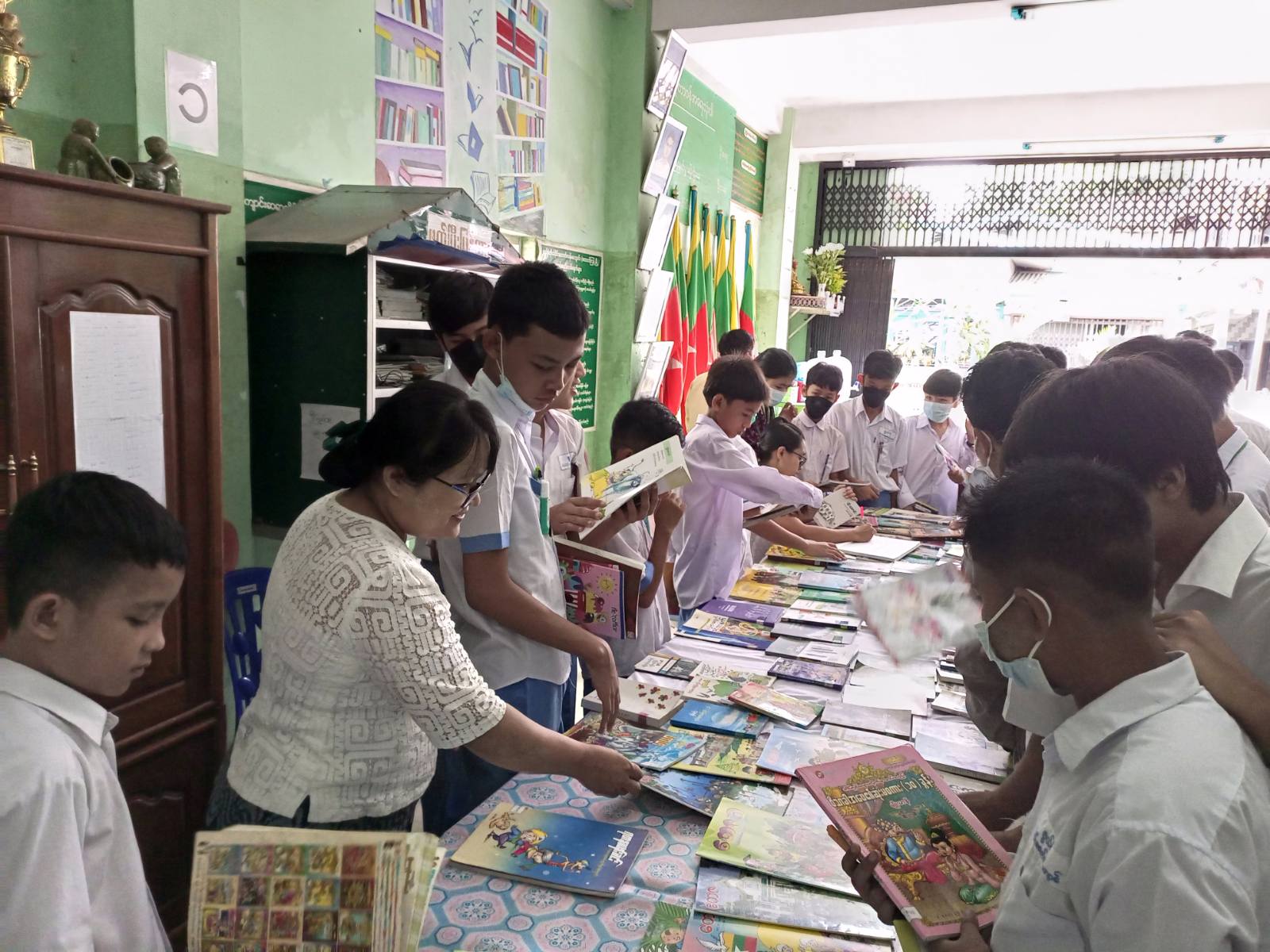 ရန်ကုန်တိုင်းဒေသကြီး မြောက်ပိုင်းခရိုင် မင်္ဂလာဒုံမြို့နယ် ပြန်ကြားရေးနှင့်ပြည်သူ့ ဆက်ဆံရေးဦးစီးဌာန၊ ဝန်ထမ်းများက နိုင်ငံတကာစာတတ်မြောက်ရေးနေ့ အထိမ်းအမှတ်အဖြစ် စာပေအသိပညာတိုးပွားစေရန်နှင့် ဗဟုသုတရရှိနိုင်စေရန်ရည်ရွယ်၍ ယနေ့နံနက် (၁၁) နာရီခွဲအချိန် က ထောက်ကြန့် စွယ်စုံကိုယ်ပိုင်အထက်တန်းကျောင်း၌ စာအုပ်စာစောင်များ စနစ်တကျ ခင်းကျင်းပြသ ငှားရမ်းပေးခဲ့ကြောင်း သိရသည်။