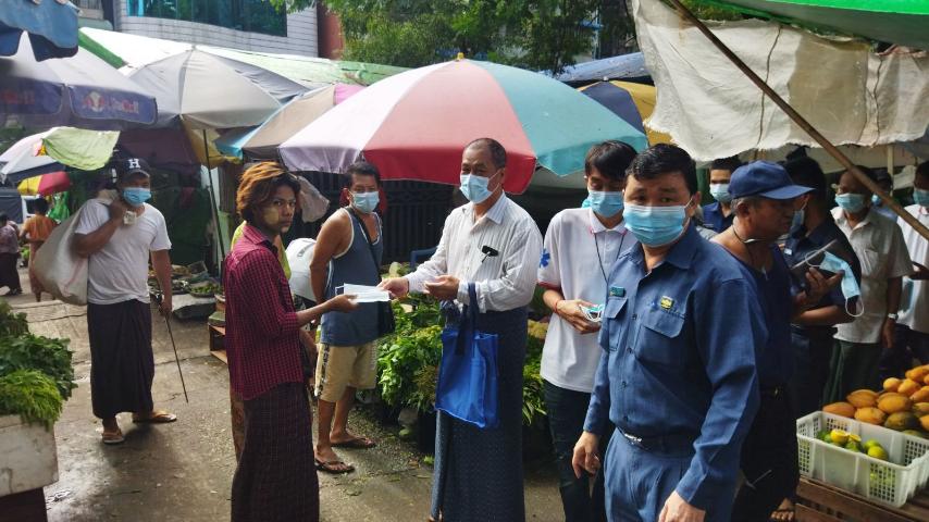 ထိုသို့ ဖြန့်ဝေပေးရာတွင် စမ်းချောင်းမြို့နယ် ကိုဗစ်-၉ ရောဂါထိန်းချုပ်ရေးနှင့် အရေးပေါ် တုံ့ပြန်ရေးကော်မတီဥက္ကဋ္ဌနှင့် အဖွဲ့ဝင်များ၊ ဌာနဆိုင်ရာများ၊ မြို့နယ်ရဲတပ်ဖွဲ့ဝင်များ၊ ကျန်းမာရေးဦးစီးဌာနမှဝန်ထမ်းများ၊ ရပ်ကွက်အုပ်ချုပ်ရေးမှူးများက ကျွန်းတော (တောင်)ရပ်ကွက်အတွင်းနှင့် ကျွန်းတောစျေးအတွင်းရှိ စျေးရောင်း/ဈေးဝယ် ပြည်သူများနှင့် ခရီးသွားလာကြသည့် ပြည်သူများအား ပါးစပ်နှင့် နှာခေါင်းစည်းများကို လက်ဝယ်အရောက် အခမဲ့ဖြန့်ဝေပေးသည်။ ထို့ပြင် ကိုဗစ်-၁၉ ရောဂါ ကြိုတင်ကာကွယ်ထိန်းချုပ်ရေး နည်းလမ်းများကိုလည်း