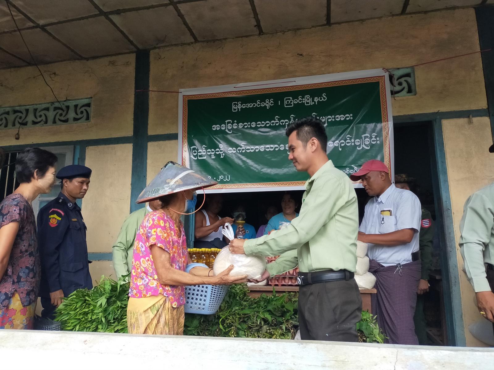 ထိုသို့ အခြေခံစားသောက်ကုန် ရောင်းချပေးခြင်းကို မြို့နယ်စီမံအုပ်ချုပ်ရေးအဖွဲ့ဥက္ကဋ္ဌနှင့် အဖွဲ့ဝင်၊ မြို့နယ်ဌာန ဆိုင်ရာများ၊ မြို့နယ်အမျိုးသမီးရေးရာအဖွဲ့၊ မိခင်နှင့် ကလေးစောင့်ရှောက်ရေးအသင်း အဖွဲ့များ၊ မြို့နယ် အတွင်းရှိ လုပ်ငန်းရှင်များ စုပေါင်းထည့်ဝင်လှူဒါန်းမှုဖြင့် အခြေခံစားသောက်ကုန် များဖြစ်သော မနောသုခဆန် နှစ်ပြည်(၃၀၀၀)ကျပ်နှုန်း၊ ဆီငါးဆယ်သား တစ်ဘူး(၂၅၀၀)ကျပ်နှုန်း၊ ကြက်ဥ (၆)လုံး(၁၀၂၀) ကျပ်နှုန်း၊ ဆားငါးဆယ်သား(၂၅၀)ကျပ်နှုန်း၊ ဟင်းရွက်တစ်စီး(၃၀)ကျပ်နှုန်းဖြင့် စုစုပေါင်း(၆၈၀၀)ကျပ်ဖိုး ရောင်းချပေး ကြောင်း သိရသည်။
