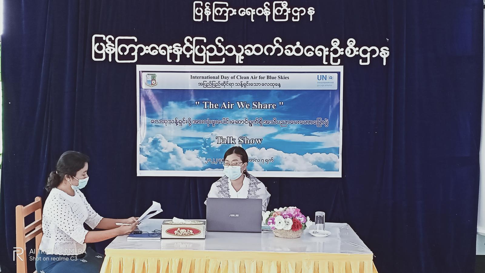 အသိပညာပေး Talk Show တွင် အပြည်ပြည်ဆိုင်ရာလေထုနေ့ ဖြစ်ပေါ်လာပုံနှင့် ပတ်သက်၍ တိုင်းဒေသကြီး ပတ်ဝန်းကျင်ထိန်းသိမ်းရေးဦးစီးဌာန၊ ဒုတိယဦးစီးမှူး ဒေါ်ဝင့်မွန်မွန်အိက ၂၀၁၉ ခုနှစ် တွင် ကျင်းပပြုလုပ်ခဲ့ သည့် (၇၄)ကြိမ်မြောက် ကုလသမဂ္ဂအထွေထွေညီလာခံ၏ ဆုံးဖြတ်ချက်၊ (၇၄/၂၀၁၉)အရ လေထုညစ်ညမ်းမှုကို ဖြစ်ပေါ်စေသည့်အကြောင်းရင်းများ၊ အကျိုးသက်ရောက်မှုများနှင့် လေထုအရည်အသွေးကို တိုးတက်လာ စေရေးအတွက် ဖြေရှင်းရမည့် နည်းလမ်းများကို ပိုမိုသိရှိ လာစေရန် အပြည်ပြည်ဆိုင်ရာ သန့်ရှင်းသော လေထုနေ့ (International Day of Clean Air For Blue Skies)ကို နှစ်စဉ်စက်တင်ဘာ (၇)ရက်နေ့တွင် ကျင်းပရန် ဆုံးဖြတ်ခဲ့ကြကြောင်း ပြောကြားခဲ့သည်။