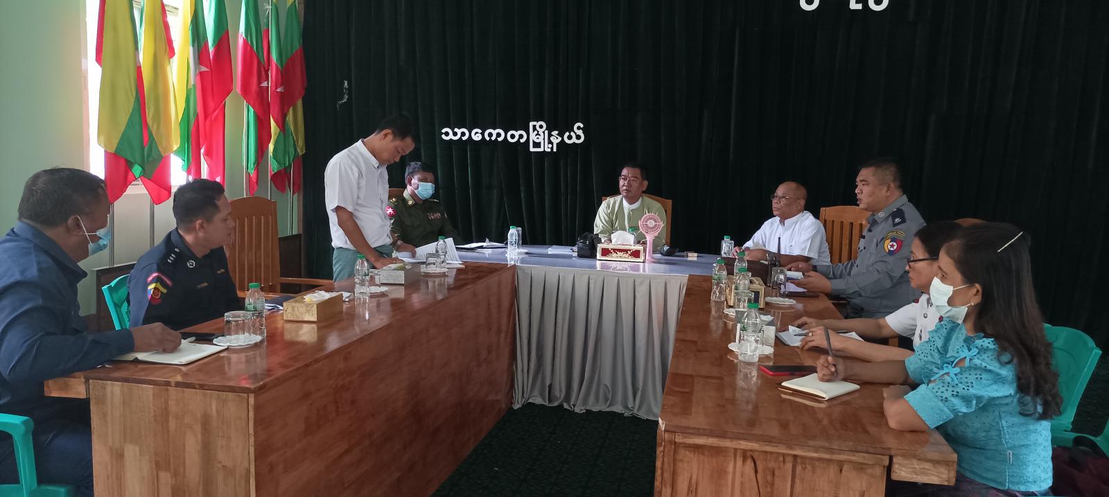 ရန်ကုန်တိုင်းဒေသကြီး၊ သာကေတမြို့နယ် အထွေထွေအုပ်ချုပ်ရေးဦးစီးဌာန စည်းဝေးခန်းမ၌ ယမန်နေ့နံနက်(၁၁:၀၀) အချိန်၌ နိုင်ငံတော်စီမံအုပ်ချုပ်ရေးကောင်စီ၏ ရှေ့လုပ်ငန်းစဉ် (၅)ရပ်၊ ဦးတည်ချက်(၉)ရပ်တို့အား အောင်မြင်စွာ အကောင်အထည်ဖော်ဆောင်ရွက်နိုင်ရေး ကွင်းဆင်းဆောင်ရွက်မည့် စစ်ကြောင်း(၅)ကြောင်းဆိုင်ရာ လုပ်ငန်းညှိနှိုင်း စည်းဝေးကျင်းပခဲ့သည်။