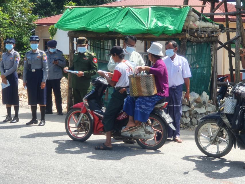 ထိုသို့ ဆောင်ရွက်ရာတွင် မြို့နယ်စီမံအုပ်ချုပ်ရေးအဖွဲ့ဥက္ကဋ္ဌ ဦးညီညီ၏ ဦးဆောင်မှုဖြင့် ယနေ့တာဝန်ကျ ဌာနဆိုင်ရာများက မြို့နယ်အတွင်းရှိ ပြည်သူများအနေဖြင့် ကိုဗစ်-၁၉ ရောဂါကူးစက်မှုကို ကာကွယ်နိုင်ရေးအတွက် နေအိမ်ပြင်ပသို့သွားလာပါက ပါးစပ်နှင့်နှာခေါင်းစည်း Mask ကို စနစ်တကျတပ်ဆင်ရန်၊ လက်ကိုမကြာခဏ ဆေးကြောရန်နှင့် တစ်ဦးနှင့်တစ်ဦး ခပ်ခွာခွာ နေထိုင်ရန်တို့ကို အသိပညာပေး ပြောကြားခဲ့ကြောင်း သိရသည်။