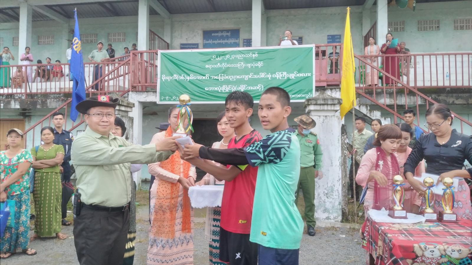 အဆိုပါ (၄)မြို့နယ် မိုးရာသီအသက် (၁၆)နှစ်အောက်အခြေခံပညာ ကျောင်းပေါင်းစုံ ဘောလုံးပြိုင်ပွဲ ဗိုလ်လုပွဲအဖြစ် ကျိုက်လတ်မြို့နယ် ဘောလုံးအသင်းနှင့် ဒေးဒရဲမြို့နယ် ဘောလုံးအသင်းတို့ ယှဉ်ပြိုင်ကစား ကြရာ ဒေးဒရဲမြို့နယ် ဘောလုံးအသင်းက တစ်ဂိုး၊ ဂိုးမရှိဖြင့် အနိုင်ရဗိုလ်စွဲသွားပြီး၊ တတိယနေရာလုပွဲအဖြစ် ဘိုကလေးမြို့နယ် ဘောလုံး အသင်းက ဖျာပုံမြို့နယ် ဘောလုံးအသင်းကို သုံးဂိုး၊ နှစ်ဂိုးဖြင့် အနိုင်ရရှိသည်။ ထို့နောက် ဆုချီးမြှင့်ပွဲကို ကျင်းပရာ ဖျာပုံခရိုင် စီမံအုပ်ချုပ်ရေးအဖွဲ့ဥက္ကဋ္ဌ ခရိုင်အုပ်ချုပ်ရေးမှူး ဦးတင်လင်းက အဖွင့်အမှာစကား ပြောကြားရာတွင် ကစားသမားများအနေဖြင့် အားကစား စိတ်ဓာတ်အပြည့်ဖြင့် ယှဉ်ပြိုင်ကြ ရန်လိုကြောင်း နိုင်ငံတော်မှ အားထားရသော မျိုဆက်သစ် အားကစားသမားကောင်းများဖြစ်အောင် ကြိုစား ကြစေလိုကြောင်း ပြောကြားသည်။ ထို့နောက်ဆုချီးမြှင့်ပွဲကို ကျင်းပရာ ပြိုင်ပွဲတွင် ပထမဆုရ ဒေးဒရဲမြို့နယ် ဘောလုံးအသင်းအား ငွေသားနှင့် ဆုတံဆိပ်ကို ဖျာပုံခရိုင်စီမံအုပ်ချုပ်ရေးအဖွဲ့ဥက္ကဋ္ဌ ကလည်းကောင်း၊ ဒုတိယဆုရ ကျိုက်လတ်အသင်းကို ခရိုင်စီမံအုပ်ချုပ်ရေး အဖွဲ့ အဖွဲ့ဝင် ဒုတိယဗိုလ်မှူးကြီး နိုင်လင်းက လည်းကောင်း၊ တတိယဆုရ ဘိုကလေး အသင်းကို မြို့နယ်ရဲတပ်ဖွဲ့မှူး ရဲမှူး ဌေးနိုင်ဦးကလည်းကောင်း၊ ဖျာပုံခရိုင် ပညာရေးမှူး ဆရာမကြီး ဒေါ်အေးမြင့်က နှစ်သိမ့်ဆုရ ဖျာပုံမြို့နယ် ဘောလုံးအသင်းကို လည်းကောင်း ငွေသားနှင့် ဆုတံဆိပ်တို့အား အသီးသီး ပေးအပ်ချီးမြှင့်ပေးခဲ့ကြောင်း သိရသည်။