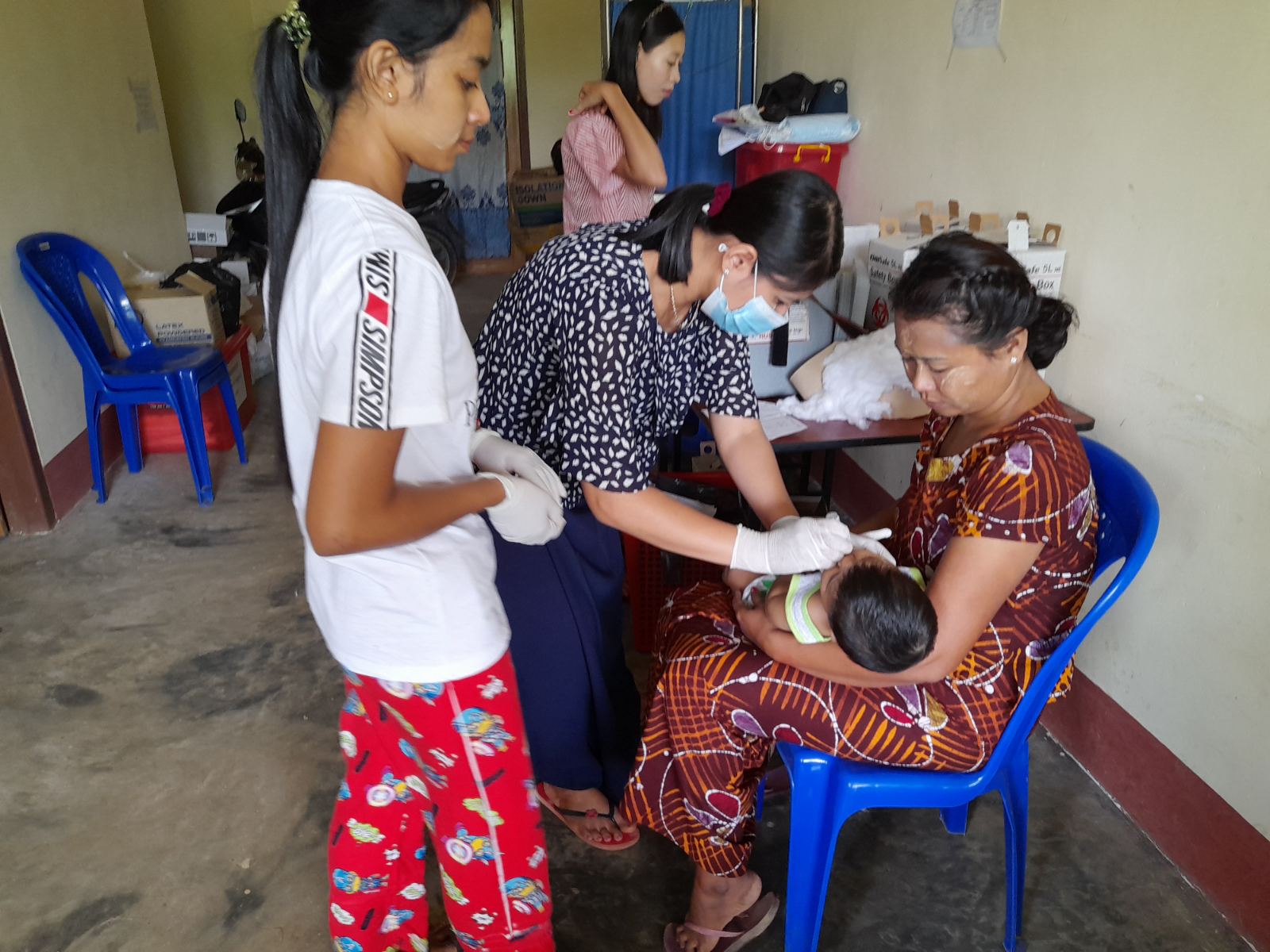 အဆိုပါကာကွယ်ဆေး ထိုးနှံ၊ တိုက်ကျွေးခြင်းလုပ်ငန်းကို သူနာပြုဆရာမ ဒေါ်သဥ္စာသိန်းဝင်းဦးဆောင်၍ ကျန်းမာရေးဝန်ထမ်းများက ကလေးသူငယ်များအား ကိုယ်အပူချိန်တိုင်းခြင်း၊ ပေါင်ချိန်ခြင်း၊ စာရင်းရေးသွင်းခြင်း တို့ကိုဆောင်ရွက်ပေးခဲ့ပြီး အသက် (၈)လ မှ အသက် (၁)နှစ်ခွဲ အထိ ကလေးသူငယ်များကို ဆိုဆို့ကြက်ညှာချောင်းဆိုး၊ မေးခိုင်၊ အသည်းရောင်သားအဝါ(ဘီ)၊ ဦးနှောက်အမြေးရောင်ရောဂါစသည့် ငါးမျိုးစပ်ကာကွယ်ဆေးများကို သတ်မှတ်အကြိမ်တိုင်း ထိုးနှံပေးခြင်း၊ ပိုလီယိုအစက်ချဆေးတိုက်ကျွေးခြင်းနှင့် ဆေးထိုးနှံပေးခြင်းတို့ကို ဆောင်ရွက်ပေးခဲ့ကြောင်း သိရသည်။