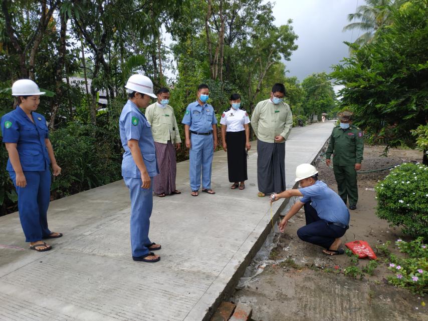 ထိုသို့ဆောင်ရွက်ရာတွင် မြို့နယ် စီမံအုပ်ချုပ်ရေးအဖွဲ့ဥက္ကဋ္ဌ ဦးဇေယျမင်း၊ အဖွဲ့ဝင်(၁)ဗိုလ်မှူး သိန်းစိုးဝင်း၊ စည်ပင်သာယာရေးကော်မတီဥက္ကဋ္ဌ ဦးရန်နိုင်ဝင်း၊ စည်ပင်သာယာရေးအဖွဲ့ အမှုဆောင်အရာရှိ ဦးခင်မောင်သန်း နှင့် တာဝန်ရှိသူတို့က ၂၀၂၂-၂၀၂၃ ခုဘဏ္ဍာရေးနှစ်အတွင်း ဆောင်ရွက်သည့် တေဇရပ်ကွက် အနော်ရထာလမ်း နှင့် အောင်ဆန်းရပ်ကွက် ရွှေနံသာလမ်းသွယ် ကွန်ကရစ်ခင်းခြင်း လုပ်ငန်းဆောင်ရွက်ပြီးစီးမှုအား ကွင်းဆင်း စစ်ဆေးခဲ့ကြသည်။