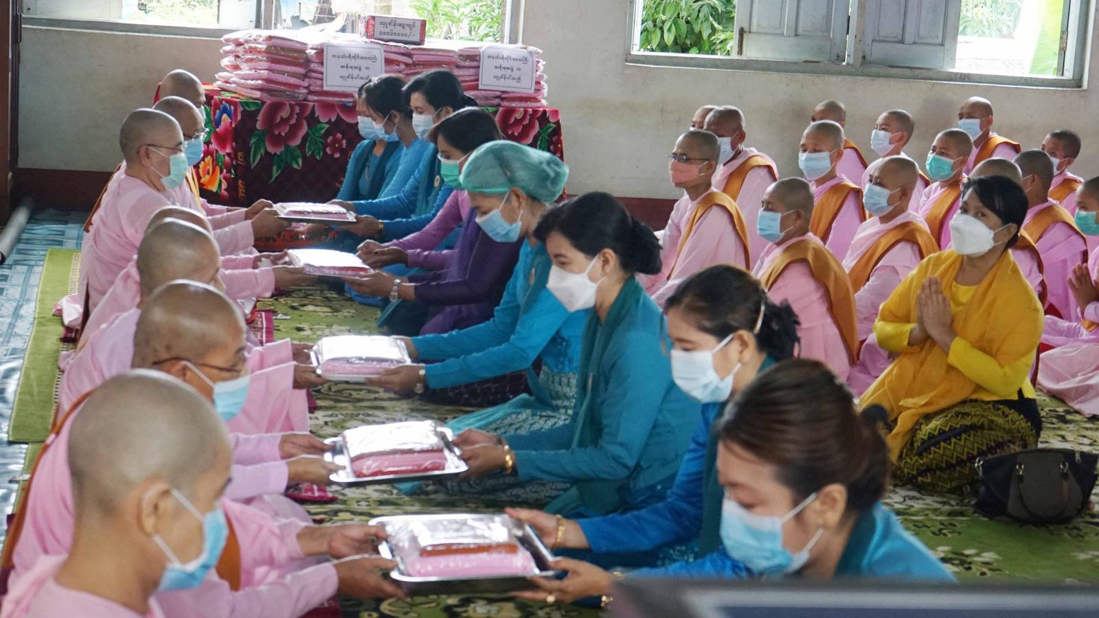 ထို့နောက် တိုင်းဒေသကြီးတရားလွှတ်တော်တရားသူကြီးချုပ် ဒေါ်ပိုက်ပိုက်အေး၊ တိုင်းဒေသကြီး အစိုးရအဖွဲ့အတွင်းရေးမှူးနှင့် ဌာနဆိုင်ရာတာဝန်ရှိသူများက ရတနာမာန်အောင် သီလရှင်စာသင်တိုက် ပဓာနနာယကသီလရှင် ဆရာကြီးထံသို့ သီလရှင်များအတွက် လိုအပ်လျက်ရှိသော သီလရှင်ဝတ်စုံများအားဆက်ကပ်လှူဒါန်းခဲ့ပြီး သီလရှင်ဆရာကြီးထံမှ အနုမောဒနာတရားနာကြား၍ လှူဒါန်းမှုအစုစုတို့အတွက် ရေစက်သွန်းချအမျှပေးဝေခဲ့ကြသည်။