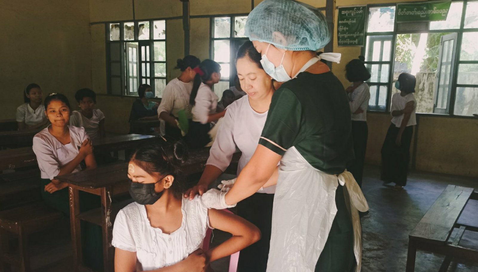 မန္တလေးတိုင်းဒေသကြီး ညောင်ဦးခရိုင်အတွင်းရှိ ကျောင်းသားကျောင်းသား ကျောင်းသူများအား ကိုဗစ်-၁၉ ရောဂါကာကွယ်ဆေးများထိုးနှံပေးလျက်ရှိရာ မန္တလေးတိုင်းဒေသကြီး ညောင်ဦးခရိုင်အတွင်းရှိ အသက် ၅ နှစ်မှ အသက် ၁၂ နှစ်အတွင်းရှိ အခြေ ခံပညာ ကျောင်းသား/သူများ၊ ဘုန်းတော်ကြီးသင်ကျောင်းများမှ ကျောင်းသား/ကျောင်းသူများ၊ ကိုယ်ပိုင်ကျောင်းများမှ ကျောင်းသူများအား ကိုဗစ်-၁၉ ရောဂါကာကွယ်ဆေးများ ဆက်လက်ထိုးနှံပေးလျက်ရှိကြောင်း ညောင်ဦးခရိုင်၊ပြည်သူ့ကျန်းမာရေးဦးစီးဌာန၊ တာဝန်ရှိသူများထံမှသိရသည်။