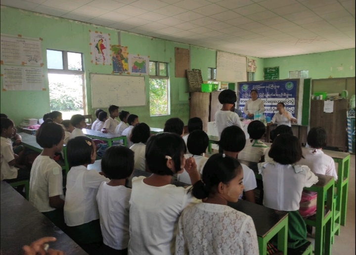 ဆက်လက်၍ ကျောင်းအုပ်ဆရာမကြီး ဒေါ်သင်းမာထွေးက ယခုလို ကျောင်းသား/ကျောင်းသူများ အသိပညာဗဟုသတရရှိစေရန်၊ အမှားအမှန်ပိုင်းခြားတတ်စေရန် လာရောက်ဆောင်ရွက်ပေးသည့်အတွက် ကျေးဇူးတင်စကားပြန်လည်ပြောကြားခဲ့သည်။ အသိပညာဗဟုသုတ ရရှိစေရန် ခင်းကျင်းပြသထားသော နံရံကပ်စာစောင်ဓာတ်ပုံများနှင့် စာအုပ်များအား ခင်းကျင်းပြသထားရာ ကျောင်းသား/ကျောင်းသူများက စိတ်ပါဝင်စားစွာ ဖတ်ရှုလေ့လာခဲ့ကြပြီး မူးယစ်ဆေးဝါးအန္တရာယ် အသိပညာပေးလက်ကမ်းစာစောင်နှင့် ကလေးအလုပ်သမားပပျောက်ရေး လက်ကမ်း စာစောင်များအား ဖြန့်ဝေပေးခဲ့ကြောင်း သိရသည်။