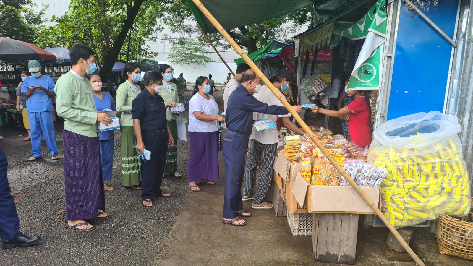 ရန်ကုန်တိုင်းဒေသကြီး၊ ဒဂုံမြို့နယ် ကိုဗစ်-၁၉ရောဂါ ကာကွယ်ထိန်းချုပ်ရေးနှင့် အရေးပေါ်တုံ့ပြန်ရေးကော်မတီနှင့် မြို့နယ်စီမံအုပ်ချုပ်ရေးအဖွဲ့၏ ဦးဆောင်မှုဖြင့် ဌာနဆိုင်ရာများ ပူးပေါင်းပြီး ဘုရားကြီးရပ်ကွက်၊ အရှေ့စျေးလမ်းရှိ ပန်တျာအခွန်လွတ်စျေး၊ ဦးဝိစာရရပ်ကွက်ရှိ ဒဂုံရိပ်သာဈေးများအတွင်း ယနေ့နံနက် (၇:၃၀) နာရီကစ၍ ကိုဗစ်-၁၉ ရောဂါ ထိန်းချုပ်နိုင်ရေး၊ ဈေးရောင်းချသူများနှင့် ပြည်သူများ နေအိမ်မှပြင်ပသို့ ထွက်ခွာသည့်အခါတိုင်း ပါးစပ်နှင့်နှာခေါင်းစည်း (Mask) စနစ်တကျ တပ်ဆင်ကြရန်အတွက် နှာခေါင်းစည်း တပ်ဆင်သွားလာရေး Mask Campaign ပြုလုပ်ခဲ့ကြောင်း သိရသည်။