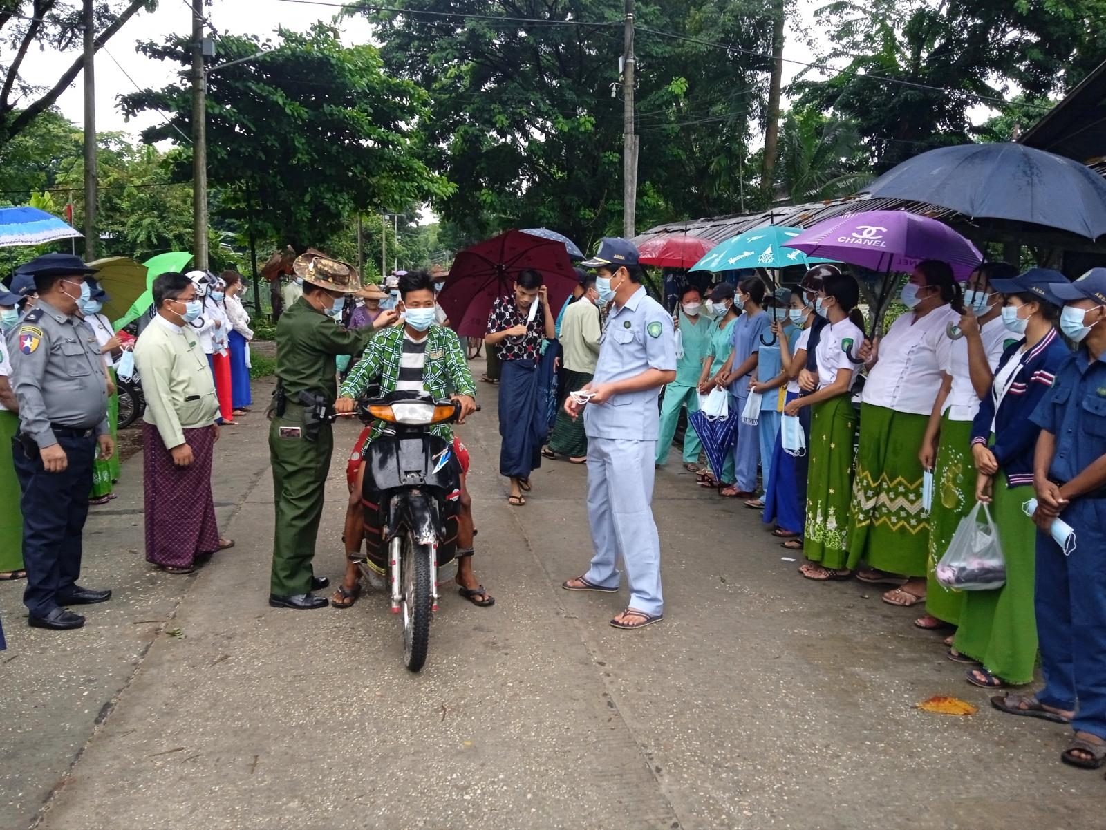 အဆိုပါ Mask Campaign ပြုလုပ်လုပ်ခြင်းကို မြို့နယ် ကိုဗစ်-၁၉ ရောဂါ ကာကွယ်ရေးနှင့် အရေးပေါ် တုံ့ပြန်ရေးကော်မတီဥက္ကဋ္ဌ ဦးအောင်ကျော်မိုး ဦးဆောင်သော အဖွဲ့ဝင်များ၊ မြို့နယ်စည်ပင်သာယာရေးအဖွဲ့ အမှုဆောင်အရာရှိနှင့် ဝန်ထမ်းများ၊ ကျန်းမာရေးဝန်ထမ်းများ၊ မြို့နယ်မိခင်ကလေး စောင့်ရှောက်ရေးအသင်းနှင့် အမျိုးသမီးရေးရာအဖွဲ့များ၊ ရဲတပ်ဖွဲ့ဝင်များ၊ မီးသတ်တပ်ဖွဲ့ဝင်များ စုပေါင်းပြီး ဈေးရောင်း၊ ဈေဝယ်များ၊ လမ်းသွားလမ်းလာပြည်သူများအား Mask Campaign ပြုလုပ်ပြီး Mask ၁၅၀၀ ခု ဝေငှခဲ့ကြောင်းနှင့် ကျန်းမာရေးဝန်ကြီးဌာနမှ ထုတ်ပြန်ထားသော ညွှန်ကြားချက်နှင့် အညီ Mask ပုံမှန်တပ်ဆင်ကြရန် အသိပညာ ပေးခဲ့ကြောင်း သိရသည်။