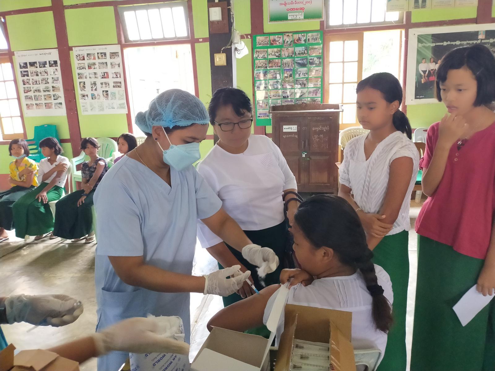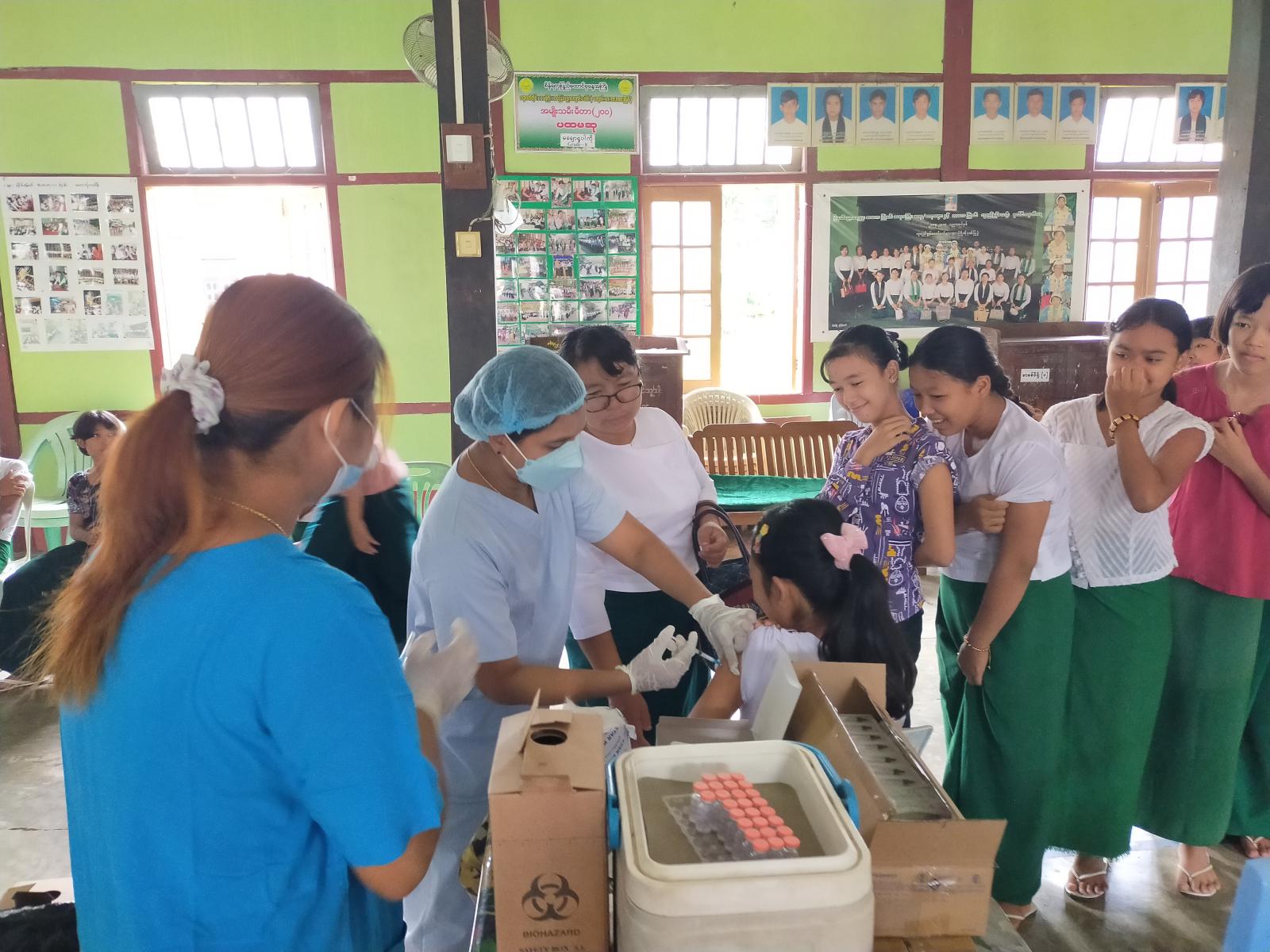 အဆိုပါ ဆေးထိုးစုရပ်တွင် မြို့နယ်အဆင့်ဌာနဆိုင်ရာ စိစစ်ကြီးကြပ်ရေးအဖွဲ့များ၊ ကျန်းမာရေး ဝန်ထမ်းများ၊ (အထက-၁) ကျောင်းမှ ကျောင်းအုပ်ဆရာမကြီးနှင့် ဆရာ၊ ဆရာမများက ဆေးမထိုးမီ ကျန်းမာရေးစစ်ဆေးမှု များ ဆောင်ရွက်ခြင်း၊ ကာကွယ်ဆေးထိုးပြီးပါက ဓာတ်မတည့်ခြင်း၊ ဘေးထွက်ဆိုးကျိုးလက္ခဏာများ ဖြစ်ပေါ် လျှင် ချက်ချင်းကုသပေးနိုင်ရေး ပူးပေါင်းဆောင်ရွက်ကြကြောင်း သိရသည်။