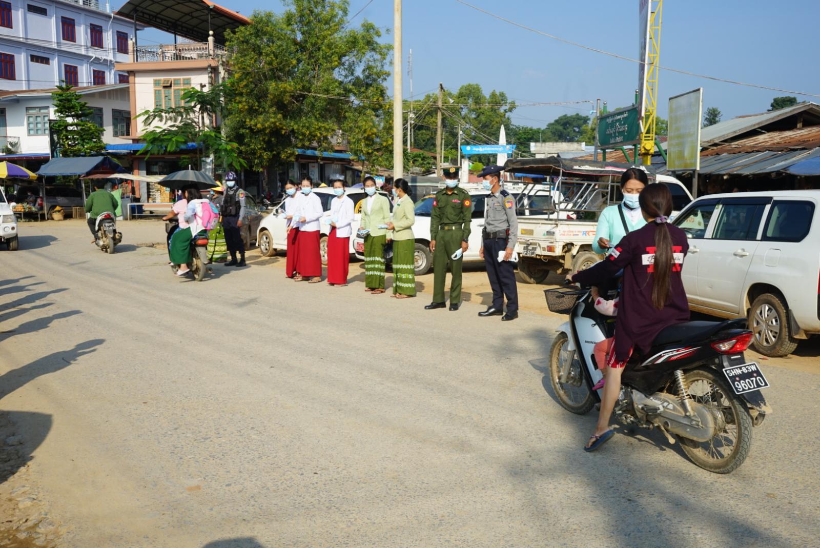 ရှမ်းပြည်နယ်တောင်ပိုင်း၊ လွိုင်လင်ခရိုင်၊ လဲချားမြို့နယ်တွင် ကိုဗစ်-၁၉ ရောဂါ ကြိုတင်ကာကွယ်နိုင်ရေးအတွက် လူစည်ကားသည့် မြို့မစျေး၊ပျံကျစျေး၊ကားဂိတ်နှင့် လူစည်ကားရာ နေရာများတွင် နှာခေါင်းစည်း(Mask) အခမဲ့ဖြန့်ဝေပေးခြင်းကို ယနေ့နံနက် (၇)နာရီခွဲ အချိန်က ပြုလုပ်ဆောင်ရွက်ခဲ့ပါသည်။