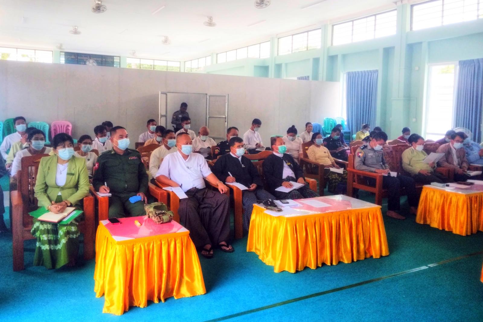 ရှေးဦးစွာ ခရိုင်အုပ်ချုပ်ရေးမှူး ဦးမြင့်သန်းက ဌာနဆိုင်ရာများအား လုပ်ငန်းများ အောင်မြင်စွာ အကောင်အထည်ဖော်ဆောင်ရွက်နိုင်ရေး အလေးထားလိုက်နာဆောင်ရွက်သွားရန်လိုအပ်ကြောင်း၊ ကိုဗစ်-၁၉ရောဂါ ကာကွယ်ဆေး ရာနှုန်းပြည့် ထိုးနှံနိုင်ရေးအတွက် သက်ဆိုင်ရာဌာနများနှင့် ပူးပေါင်းဆောင်ရွက်သွားရန် လိုအပ်ကြောင်း၊ ကိုဗစ်-၁၉ ကာကွယ်ရေး Mask Campaign လုပ်ငန်းများကို ဌာနဆိုင်ရာများနှင့်ပူးပေါင်း ဆောင်ရွက်သွားမည်ဖြစ်ကြောင်းနှင့် မြို့၊ ရွာများ သန့်ရှင်းသာယာလှပစေရေး ဆောင်ရွက်သွားရန်လိုအပ်ကြောင်း၊ လုပ်ငန်းများ နှောက်နှေးကြန့်ကြာမှုများ မရှိစေရေးနှင့် မြန်ဆန်စွာ ဆောင်ရွက်နိုင်ရေးအတွက် ဌာနဆိုင်ရာများမှ တက်တက်ကြွကြွ ပူးပေါင်းဆောင်ရွက်ပေးစေလိုကြောင်း ပြောကြားခဲ့သည်။ ဆက်လက်ပြီး ခရိုင်ရဲတပ်ဖွဲ့မှူးက ဝန်ထမ်းများလုံခြုံရေးနှင့် ရုံးလုံခြုံရေး အလေးထားဆောင်ရွက်ရန်လိုအပ်ကြောင်း၊ ဒုခရိုင်အုပ်ချုပ်ရေးမှူးက ခရိုင်အဆင့်ဖွဲ့စည်းထားသော အဖွဲ့အစည်းများအား ဖတ်ကြားတင်ပြခြင်း၊ မြို့နယ်စီမံ အုပ်ချုပ်ရေးအဖွဲ့ဝင်များမှလည်း မိမိတို့တာဝန်ယူဆောင်ရွက်ရသည့် လုပ်ငန်းတာဝန်များအား ဆွေးနွေးတင်ပြခြင်းနှင့် တက်ရောက်လာသည့် ဌာနဆိုင်ရာ အကြီးအကဲများမှ မိမိတို့၏ လုပ်ငန်းတာဝန် ဆောင်ရွက်ချက်များအား ဆွေးနွေးတင်ပြခဲ့ကြပြီး ဆွေးနွေးတင်ပြချက်အပေါ် ခရိုင်အုပ်ချုပ်ရေးမှူးက လိုအပ်သည်များ ပေါင်းစပ်ညှိနှိုင်း ဆောင်ရွက်ပေးခဲ့ကြောင်း သိရပါသည်။