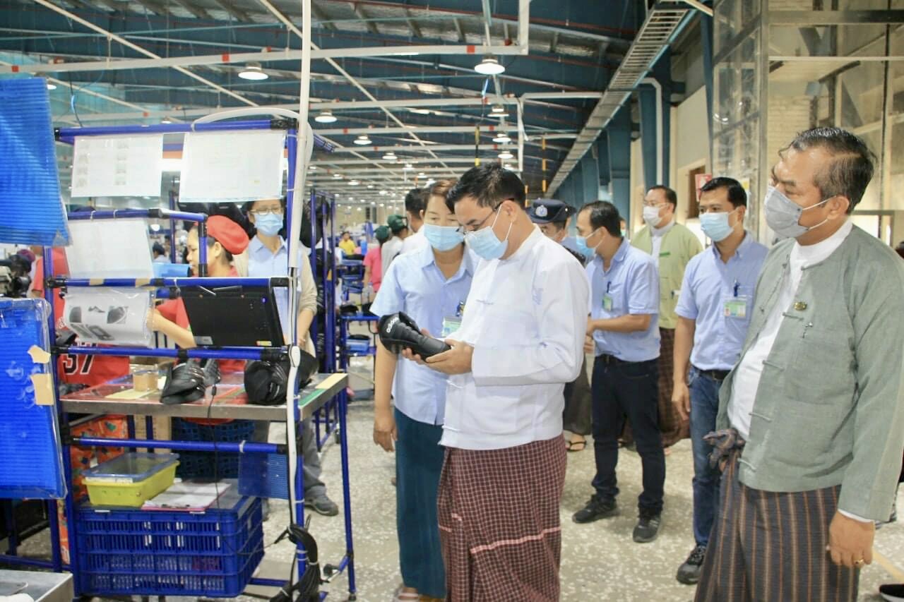 ထို့နောက် တိုင်းဒေသကြီး ဝန်ကြီးချုပ်က စက်ရုံများအတွင်း ကိုဗစ်- ၁၉ ရောဂါ ကူးစက်မှုမရှိစေရေး ကျန်းမာရေးဝန်ကြီးဌာနမှ ထုတ်ပြန်ထားသည့် စည်းကမ်းချက်နှင့်အညီ လုပ်ကိုင်ဆောင်ရွက်ရန်၊ ကာကွယ်ဆေးအကြိမ်ပြည့် ထိုးနှံပြီးစီးသူများအား ထပ်ဆောင်း Booster ထပ်မံထိုးနှံနိုင်ရေး ဆောင်ရွက်ရန်၊ စက်ရုံလုပ်ငန်းများ ထပ်မံတိုးချဲ့ဆောင်ရွက်နိုင်ရေး အခွင့်အလမ်းကောင်းများ ရရှိနိုင်သည့် အခြေအနေများနှင့် လုပ်ငန်းချိန်အတွင်း လျှပ်စစ်မီးအချိန်ပြည့်ရရှိနိုင်ရေး တာဝန်ရှိသူများနှင့် ပေါင်းစပ်ညှိနှိုင်းဆောင်ရွက်ပေးခဲ့ပြီး စက်ရုံအတွင်း လှည့်လည် ကြည့်ရှုခဲ့သည်။