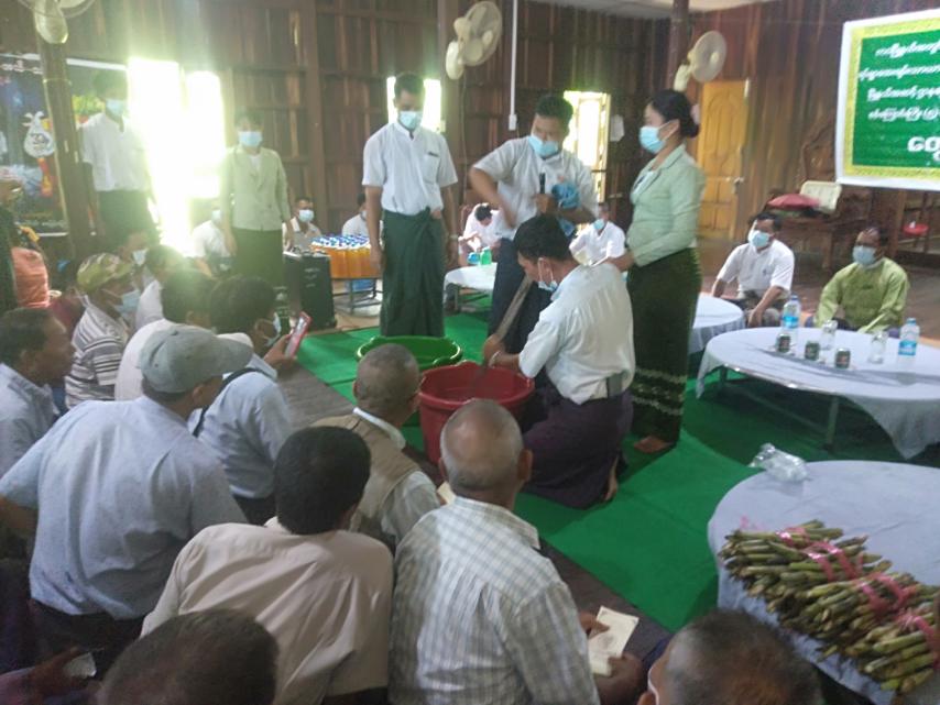 ထိုသို့ဆောင်ရွက်ရာတွင် မြို့နယ်ကျန်းမာရေးဦးစီးဌာနက ကိုဗစ်ကာကွယ်ဆေးများ ထိုးနှံပေးခြင်း၊ မြို့နယ် လ.ဝ.ကဦးစီးဌာနက ပန်းခင်း(၂)စီမံချက်ဖြင့် အိမ်ထောင်စုဇယားများ ပြုလုပ်ပေးခြင်းနှင့် မှတ်ပုံတင်များ ပြုလုပ်ပေးခြင်း၊ မြို့နယ်အထွေထွေအုပ်ချုပ်ရေးဦးစီးဌာနက ဆပ်ပြာဆီပြုလုပ်နည်း လက်တွေ့သရုပ်ပြခြင်း၊ ဆပ်ပြာဆီပြုလုပ်နည်း အသိပညာပေး လက်ကမ်းစာစောင်များ ဖြန့်ဝေခြင်း၊ တက်ရောက်လာသော ပြည်သူများအား ဆပ်ပြာဆီဗူးများ လက်ဆောင်ပေးအပ်ပြီး၊ စားသုံးဆီ (၁)ပိဿာလျှင် (၆၀၀၀)ကျပ်နှုန်းဖြင့် ရောင်းချပေးခဲ့ကြာင်း သိရသည်။
