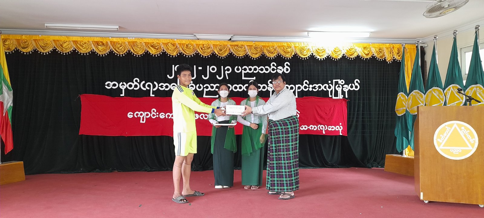 ရှေးဦးစွာ ကျောင်းကောင်စီ ဥက္ကဋ္ဌ ဦးအောင်စိုး က ပြိုင်ပွဲကျပ်းပပြုလုပ်ခြင်းနှင့် ပတ်သတ် အမှာစကားပြောကြားခဲ့ပြီး ကျောင်းအုပ်ဆရာမကြီး ဒေါ်သိင်္ဂီ က ကျေးဇူးတင်စကား ပြောကြားခဲ့သည်။ ဆက်လက်၍ ဆုချီးမြှင့်ခြင်းကို ဆောင်ရွက်ခဲ့ရာ ပထမဆု ကျပ် ၅၀၀၀၀၊ ဒုတိယဆု ကျပ် ၃၀၀၀၀၊ တတိယဆု ကျပ် ၂၀၀၀၀နှင့် အထူးရရှိသော အသင်း(၂) သင်းအား ဆုငွေ ကျပ် ၁၀၀၀၀ စီကို တာဝန်ရှိသူများက ဆုများအသီးသီးချီးမြှင့်ခဲ့ပြီး အခမ်းအနားသို့ ကျောင်းကောင်စီအဖွဲ့ဝင်များ၊ ဆရာ/ဆရာများ၊ ကျောင်းသား/ကျောင်းသူများ တက်ရောက်ခဲ့သည်။