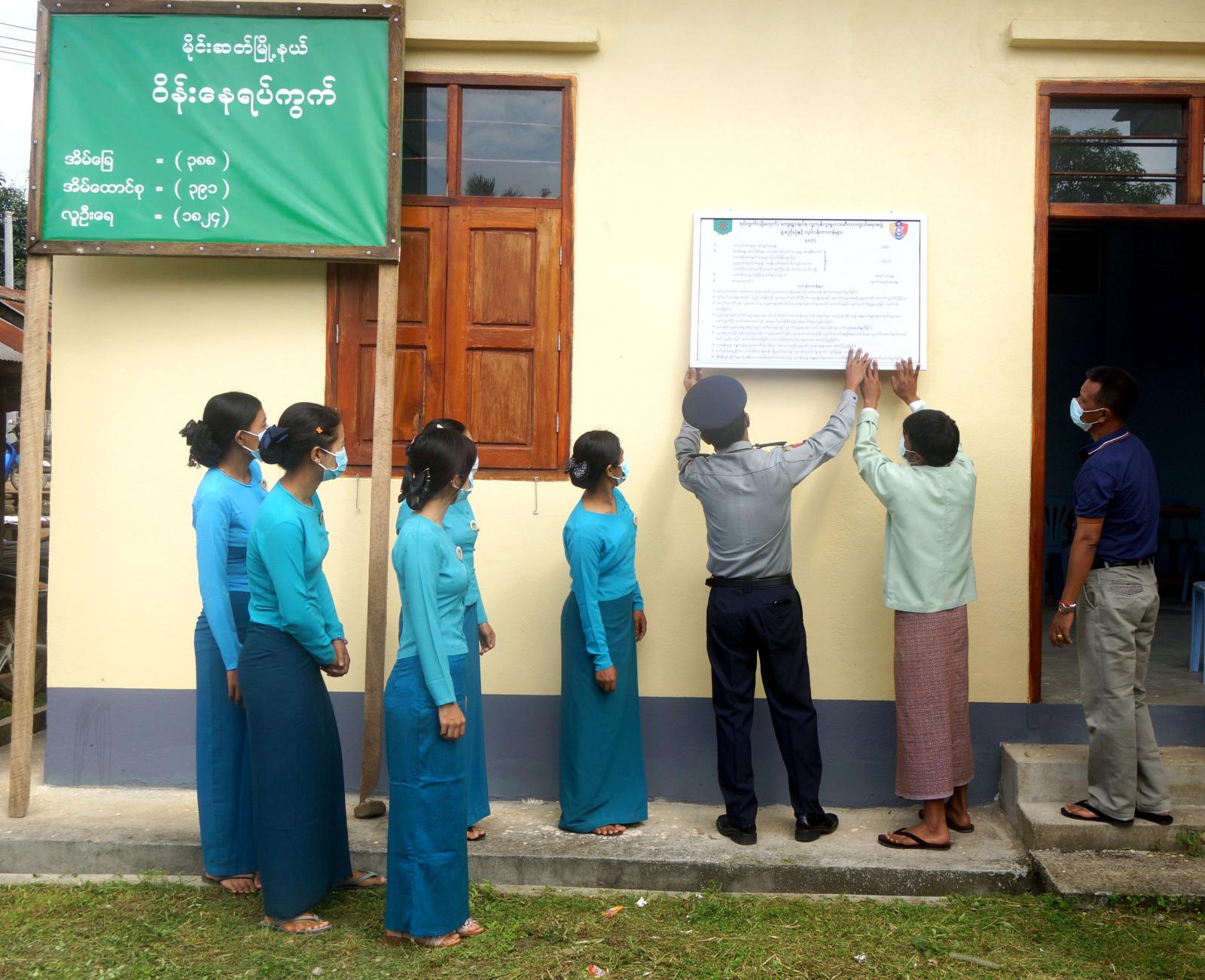 အဆိုပါ နံရံကပ်ဘုတ်ချိတ်ဆွဲခြင်းကို ခရိုင်လူကုန်ကူးမှုတားဆီးကာကွယ်ရေးအဖွဲ့ ဥက္ကဋ္ဌ၊ ခရိုင်စီမံ အုပ်ချုပ်ရေးအဖွဲ့ဥက္ကဋ္ဌ ဦးအောင်ဟိန်းကျော်၊ မြို့နယ်စီမံအုပ်ချုပ်ရေးအဖွဲ့ဥက္ကဋ္ဌ ဦးအားလွန်၊ ရပ်ရွာအခြေပြု လူကုန်ကူးမှုစိစစ်ဖော်ထုတ်ရေးအဖွဲ့ဝင်များနှင့် အမျိုးသမီးရေးရာအဖွဲ့ဝင်များ တက်ရောက်ခဲ့ကြောင်း သိရသည်။