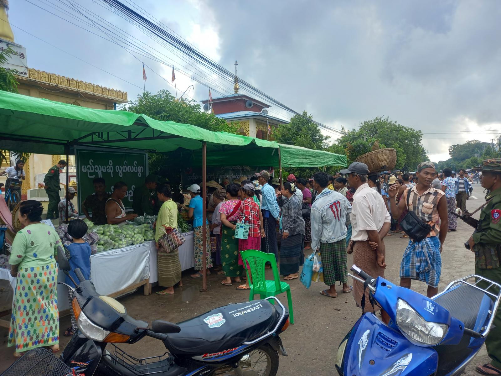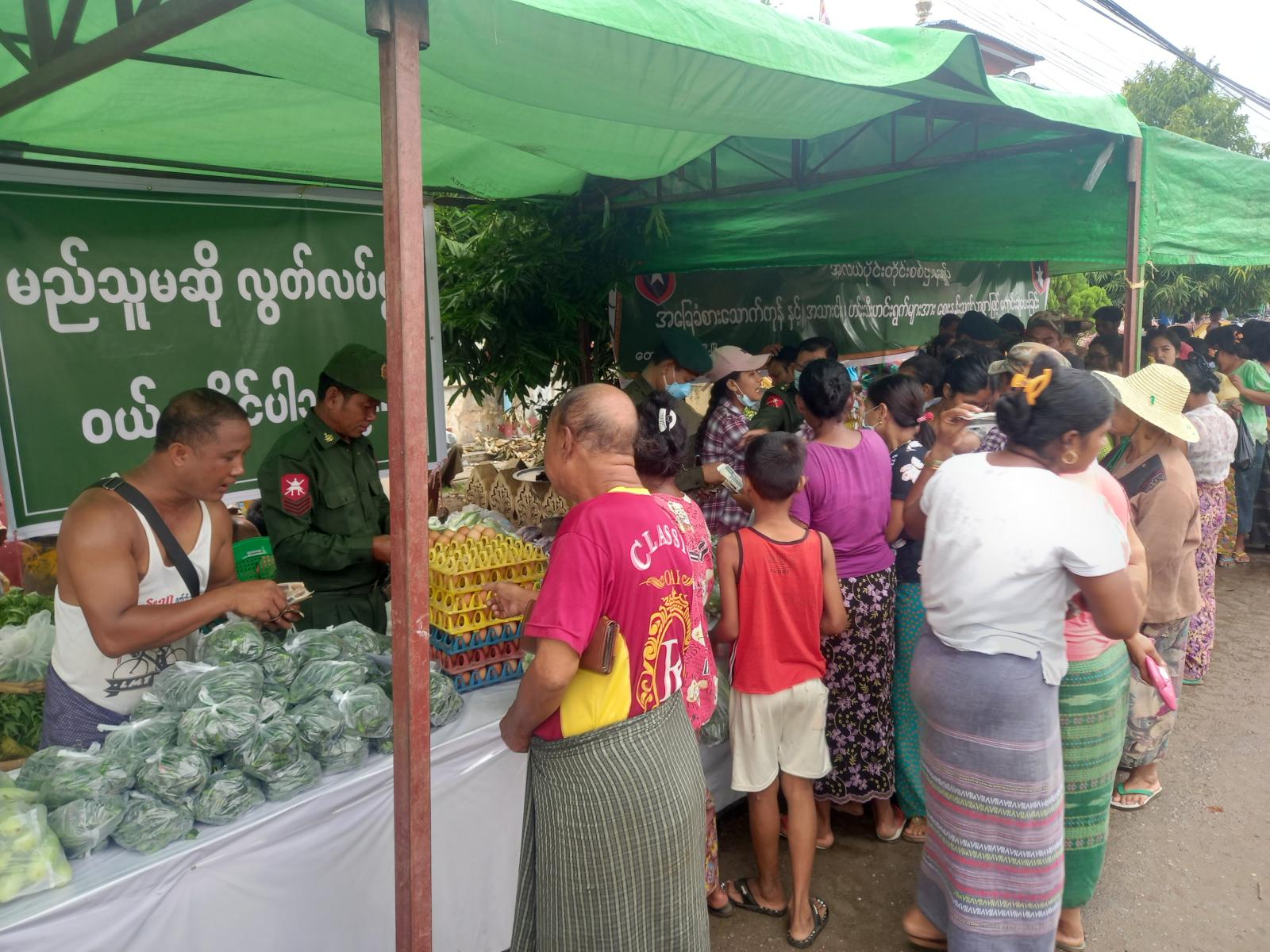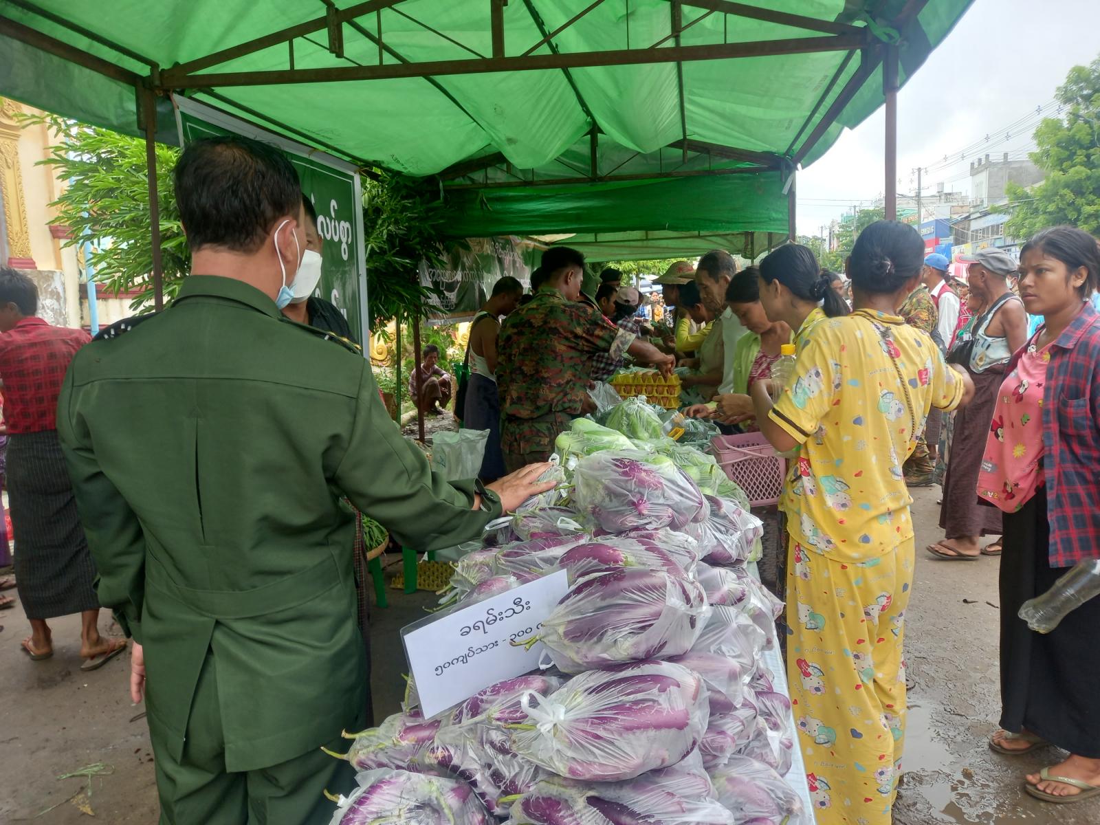 အလယ်ပိုင်းတိုင်းစစ်ဌာနချုပ်၏ စီစဉ်ဆောင်ရွက်မှုဖြင့် အခြေခံစားသောက်ကုန်များဖြစ်သည့် ဆန်၊ ဆီ၊ ကြက်ဥ၊ အသား၊ ငါးနှင့်ဟင်းသီးဟင်းရွက်တို့ကို ပြင်ပပေါက်ဈေးထက် သက်သာသောဈေးနှုန်းများဖြင့် ရောင်းချပေးခဲ့ကြသည်။