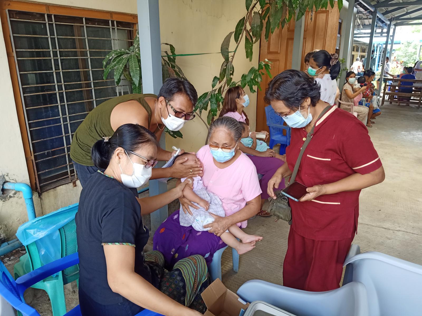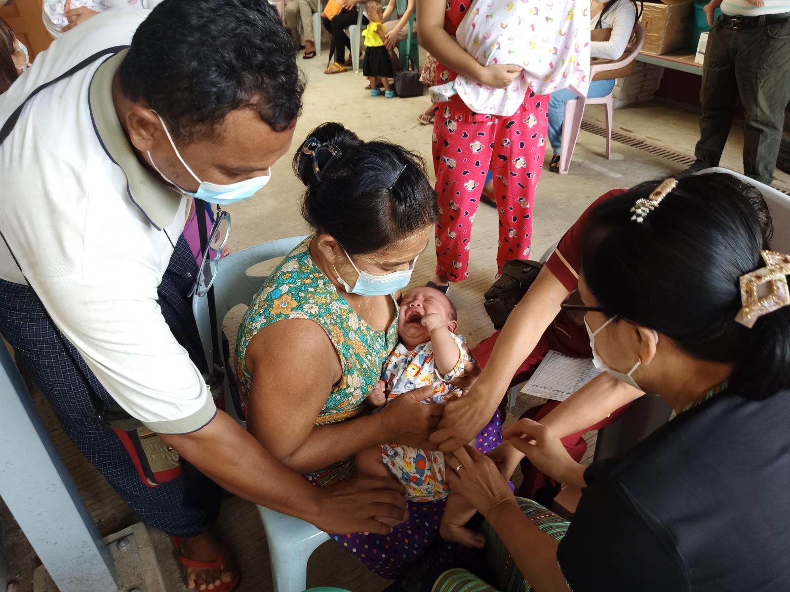 ထိုသို့ဆောင်ရွက်ရာတွင် မြို့နယ်ပြည်သူ့ကျန်းမာရေးဦးစီးဌာနမှ ဝန်ထမ်းများက မြို့နယ် အတွင်းရှိ ရပ်ကွက်များမှ အသက်မွေးစမှ တစ်နှစ်ခွဲအရွယ်ထိ ကလေးများအား အဆုတ်တီဘီ၊ ငါးမျိုးစပ်(BCG)၊ ပိုလီယို၊ ပြင်းထန်အဆုတ်ရောင်၊ မေးခိုင်၊ ဝက်သက်ရောဂါ ကာကွယ်ဆေး များကို ထိုးနှံတိုက်ကျွေးပေးခဲ့သည်။
