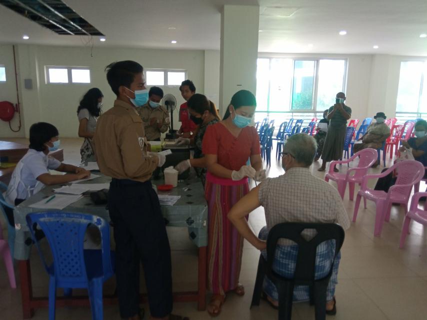 ရန်ကုန်တိုင်းဒေသကြီး၊ ရန်ကုန်အနောက်ပိုင်းခရိုင်၊ လှိုင်မြို့နယ်၌ ကိုဗစ်-၁၉ ရောဂါ ကာကွယ်ထိန်းချုပ်နိုင်ရန်အတွက် အသက်(၁၈)နှစ်နှင့်အထက် ပြည်သူများအား လှိုင်မြို့နယ် အမှတ်(၁၂)ရပ်ကွက်၊ ကိုဗစ်-၁၉ ကုသရေးစင်တာတွင် ပြည်သူများအား ကိုဗစ်-၁၉ ရောဂါ ကာကွယ်ဆေးဆက်လက်ထိုးနှံပေးလျက်ရှိရာ ယနေ့နံနက် ၉နာရီအချိန် က အသက်(၁၈)နှစ်နှင့် အထက်ရှိသူများအား ကာကွယ်ဆေး ထိုးနှံသူစုစုပေါင်း (၂၄၂)ဦးရှိကြောင်း သိရသည်။