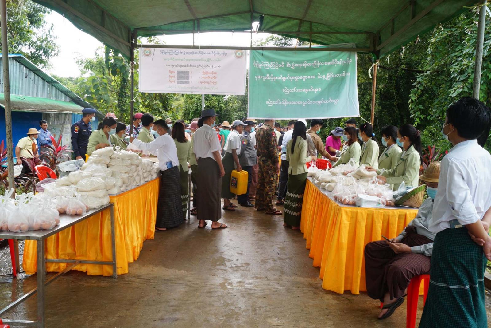 ပြည်သူများအား သက်သာသောဈေးနှုန်းဖြင့် အခြေခံစားသောက်ကုန်ပစ္စည်းသုံးမျိုး ရောင်းချပေးရာတွင်လည်း ဆန်တစ်ပြည်လျှင်ငွေကျပ်(၁၅၈၅)နှုန်းဖြင့် ဆန်(၁၀)အိတ်၊ ဆီတစ်ပိဿာလျှင် ငွေကျပ်(၅၃ဝဝ)နှုန်းဖြင့် ဆီပိဿာ(၁၁ဝ)နှင့် ကြက်ဥတစ်လုံးလျှင်ငွေကျပ်(၁၇၅)ဖြင့် ကြက်ဥအလုံး(၁ဝဝဝ)ကိုလည်းကောင်း မြို့နယ်အထွေထွေအုပ်ချုပ်ရေးဦးစီးဌာနမှ ဝန်ထမ်းများကရောင်းချပေးခဲ့ကြောင်းသိရပြီး ရောင်းချပေးနေမှုများကိုလည်း မြို့နယ်စီမံအုပ်ချုပ်ရေးအဖွဲ့ဥက္ကဋ္ဌ ဦးနိုင်နိုင်ဦးနှင့်မြို့နယ်စီမံအုပ်ချုပ်ရေးအဖွဲ့ဝင်များက ကြည့်ရှုအားပေးခဲ့ကြကာ ဈေးလာရောက်ကာဝယ်ယူကြသည့် ဒေသခံပြည်သူများကိုလည်း တစ်ခါသုံးနှာခေါင်းစည်းများ(အခမဲ့) ဖြန့်ဝေပေးခဲ့ကြကြောင်း သိရသည်။
