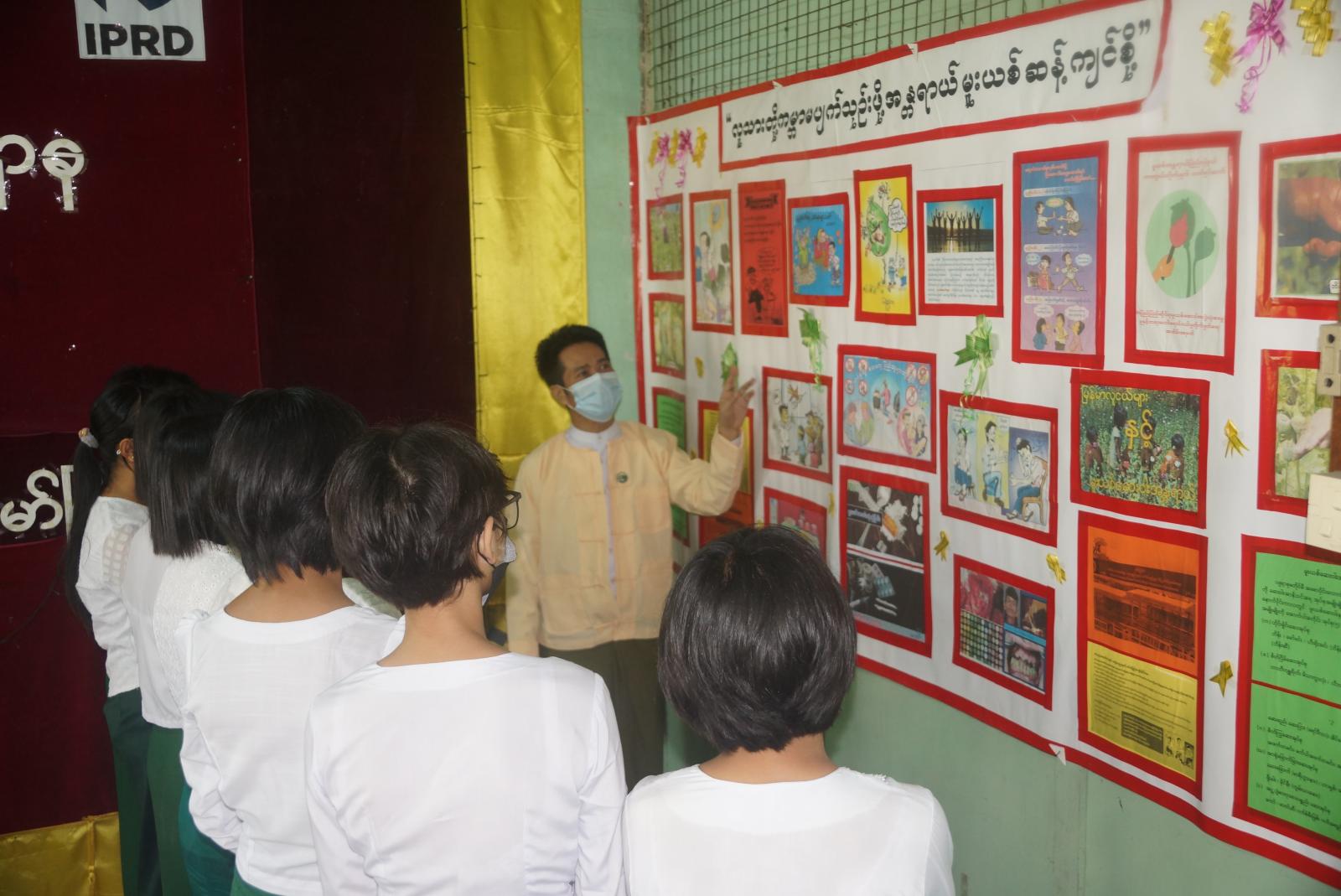 ယင်းနောက် ကျောင်းသားကျောင်းသူများအား အသိပညာဗဟုသုတတိုးပွားစေရန် ဗန်းမော်ခရိုင်ပြန်ကြားရေးနှင့်ပြည်သူ့ဆက်ဆံရေးဦးစီးဌာနမှ ဝန်ထမ်းများက ခင်းကျင်းပြသ ထားသည့် သုတ/ရသစာအုပ်စာစောင်များ၊ အသိပညာပေး နံရံကပ်စာစောင်များကို စိတ်ဝင်တစား ကြည့်ရှုလေ့လာခဲ့ကြောင်း သိရသည်။