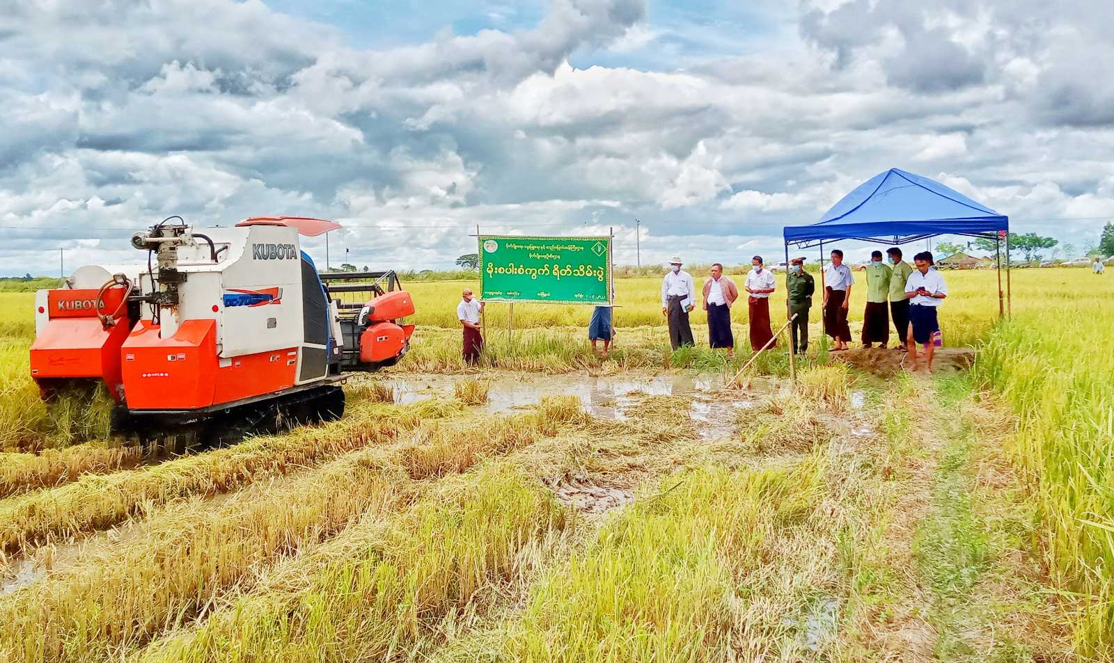 ထို့နောက်မိုးစပါးစံပြအထွက်နှုန်းအား မြို့နယ်စိုက်ပျိုးရေးဦးစီးဌာန၊ ဦးစီးမှူးဦးအောင်မိုးလွင်နှင့် ဝန်ထမ်းများက မြို့နယ်လယ်ယာမြေစီမံခန့်ခွဲရေးနှင့် စာရင်းအင်းဦးစီးဌာနမှ တာဝန်ရှိသူများနှင့်အတူ မိုးစပါးစံပြကွက်ကို ရိတ်သိမ်းရာ တစ်ဧက အစိုတင်း(၈၂ )တင်း ထွက်ရှိကြောင်း သိရသည်။