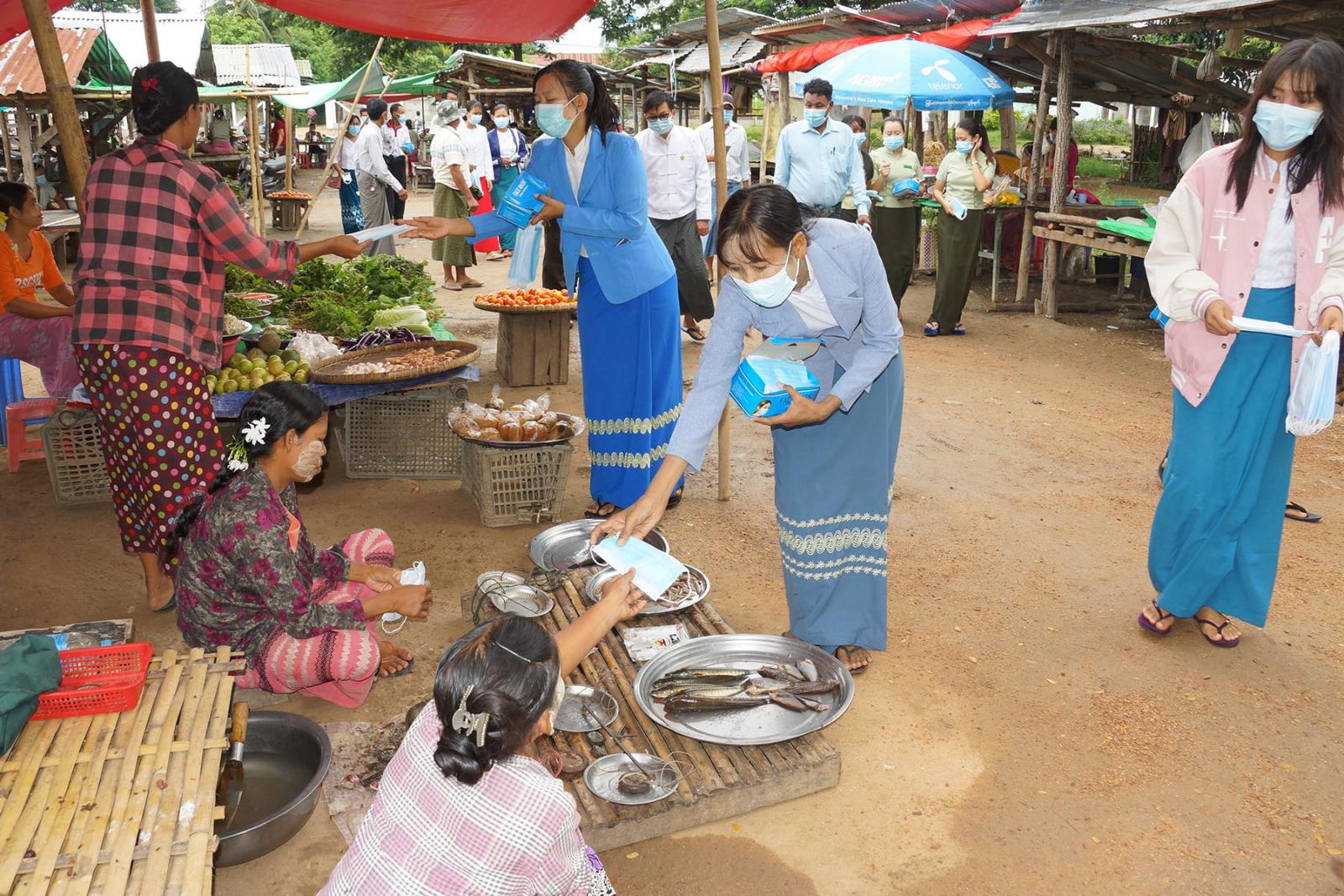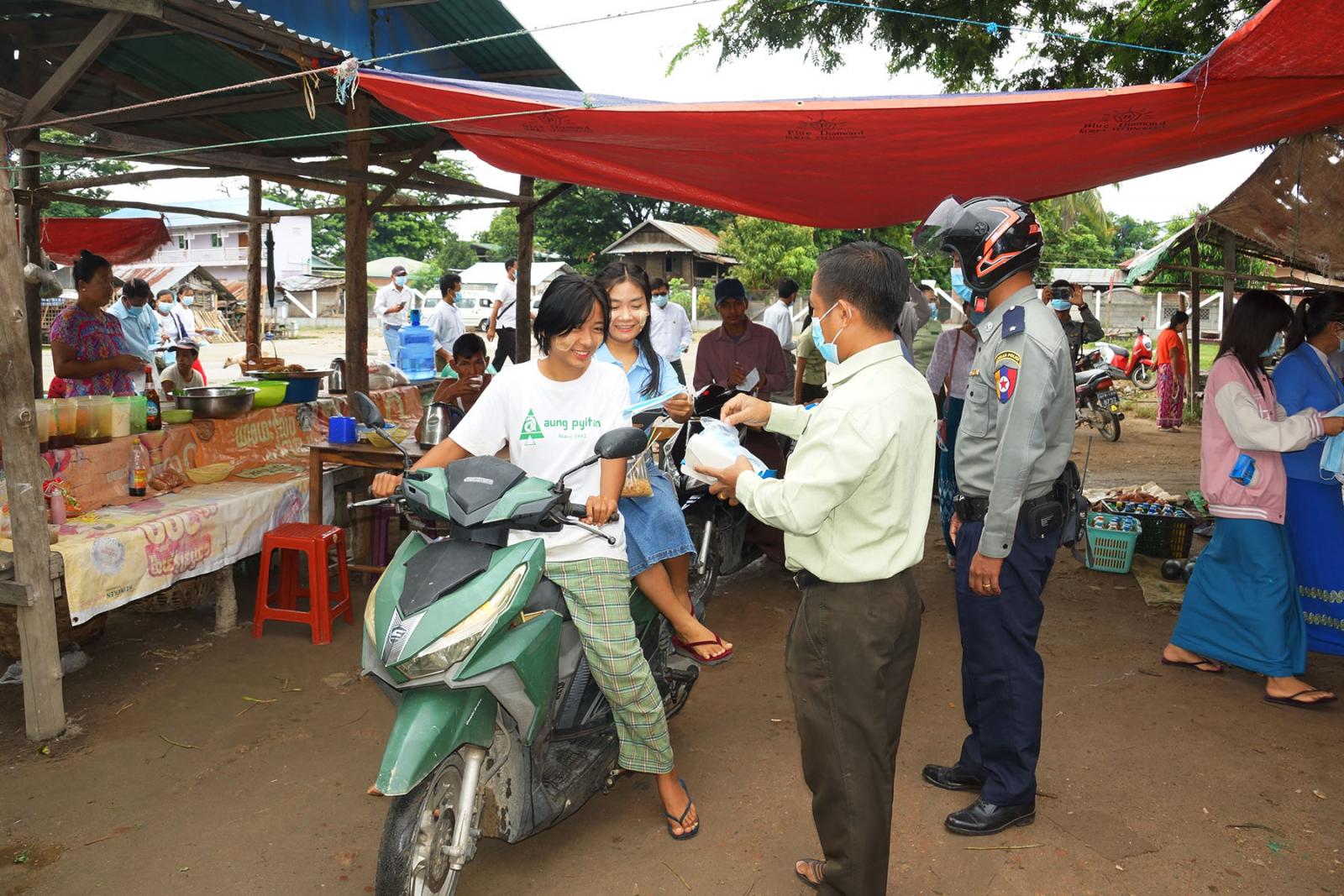 ထိုသို့ Mask Campaign ပြုလုပ်ရာတွင် ဒေသခံခရီးသွားများနှင့် ဈေးရောင်း/ ဈေးဝယ် ပြည်သူများအား ကျန်းမာရေးဝန်ကြီးဌာနမှ ထုတ်ပြန်ထားသည့် ကိုဗစ်-၁၉ရောဂါ စည်းကမ်းချက်များနှင့်အညီ ပါးစပ်နှင့်နှာခေါင်းစည်း (Mask)ကို တပ်ဆင်စေရန်၊ ပြည်သူများ နေအိမ်ပြင်ပသို့ ထွက်ခွာသည့်အခါတိုင်း ပါးစပ်နှင့်နှာခေါင်းစည်း (Mask)ကို စနစ်တကျတပ်ဆင် သွားလာရန်နှင့် ကိုဗစ်-၁၉ ရောဂါ စည်းကမ်းချက်များနှင့်အညီ သွားလာနေထိုင်သည့် အလေ့ အကျင့်ကောင်းများ ဆက်လက်လိုက်နာဆောင် ရွက်စေရန်၊ ကိုဗစ်- ၁၉ ရောဂါကာကွယ်ဆေး အကြိမ်ပြည့်ထိုးနှံစေရန် အသိပညာပေးပြောကြားခြင်းနှင့် နှာခေါင်းစည်း(Mask) ၁၆၀၀ ကျော်ကို အခမဲ့ဖြန့်ဝေပေးခြင်း လုပ်ငန်းများအား မြို့နယ်စီမံအုပ်ချုပ်ရေးအဖွဲ့ ဥက္ကဋ္ဌနှင့် အဖွဲ့ဝင်များ၊ ကျန်းမာရေးဝန်ထမ်းများ၊ ဌာနဆိုင်ရာများ၊ မြို့ပေါ်ရပ်ကွက်အုပ်ချုပ်ရေးမှူးများနှင့် လူမှုရေးအသင်းအဖွဲ့များ ပူးပေါင်းဆောင်ရွက်ခဲ့ကြောင်း သိရသည်။