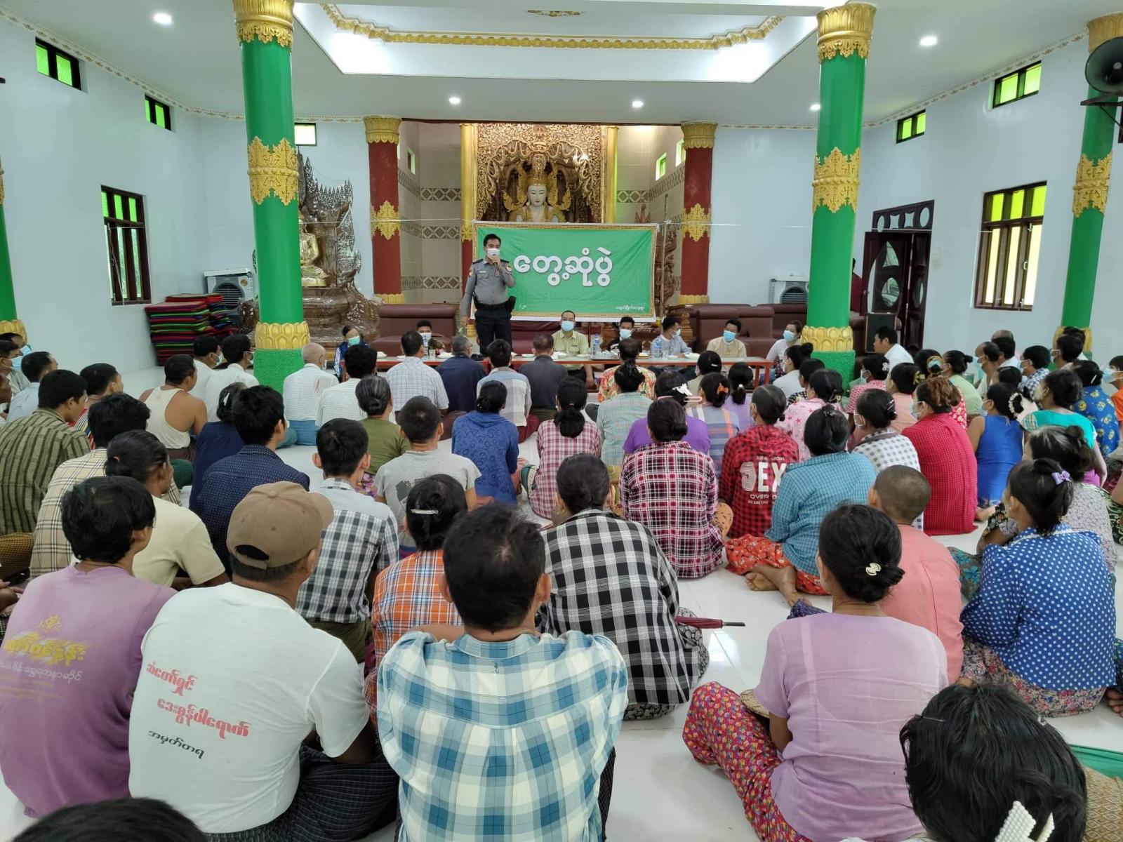 ဧရာဝတီတိုင်းဒေသကြီး၊ မြောင်းမြခရိုင်၊ ဝါးခယ်မမြို့နယ်၊ သရွတ်မြိုက်ကျေးရွာရှိ ဇေတဝန်ဘုန်းတော်ကြီးကျောင်း ဓမ္မာရုံတွင် ယနေ့နံနက် ၈ နာရီခွဲအချိန်က မြို့နယ်စီမံအုပ်ချုပ်ရေးအဖွဲ့ဥက္ကဋ္ဌ ဦးစွမ်းထက် ဦးဆောင်သော စစ်ကြောင်းကြီး(၅)ကြောင်းမှ ဒေသခံပြည်သူများနှင့် တွေ့ဆုံ၍ ဒေသဖွံ့ဖြိုးတိုးတက်ရေးလုပ်ငန်းများ ဆောင်ရွက်ခဲ့ကြကြောင်း သိရသည်။