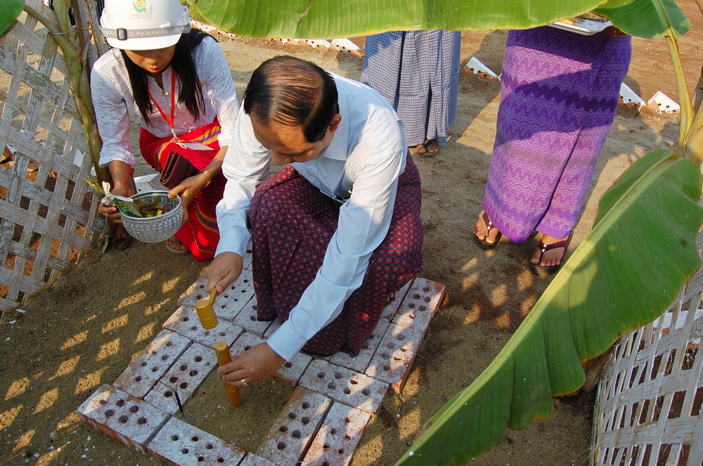 ရှေးဦးစွာ အဆောက်အအုံ တည်ဆောက်ရေးကော်မတီဥက္ကဋ္ဌ၊ ပခုက္ကူမြို့နယ် အုပ်ချုပ်ရေးမှူး ဦးမြင့်ဆောင်၊ အဆောက်အအုံတည်ဆောက်ရေး ကော်မတီအတွင်းရေးမှူး၊ ပခုက္ကူ တက္ကသိုလ် ပါမောက္ခချုပ် ဒေါက်တာ သက်လွင်၊ ပခုက္ကူခရိုင် ပြန်ကြားရေးနှင့်ပြည်သူ့ဆက်ဆံရေးဦးစီးဌာန ခရိုင်ဦးစီးမှူး ဦးဇော်ဌေးအောင်၊ ဌာနဆိုင်ရာများနှင့် ဂရုဏာမိုး ဆောက်လုပ်ရေးကုမ္ပဏီမှ တာဝန်ရှိသူများက သတ်မှတ်နေရာအသီးသီးတွင် ပန္နက်ရိုက် ပြီး နံ့သာမွှေးများ ပက်ဖြန်း ကြသည်။