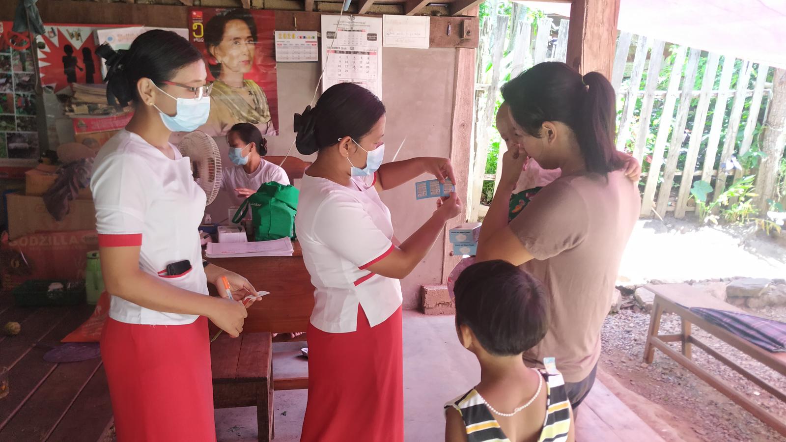 မြို့နယ်ကျန်းမာရေးဌာန အမျိုးသမီးကျန်းမာရေးဆရာမ ဒေါ်မာရီနာ ဦးဆောင်၍ ကျန်းမာရေးဆရာမများက ၆ လပြည့်ပြီးသော ကလေးငယ်များနှင့် ၂ နှစ်အောက် ကလေးငယ်များအား ကလေးတစ်ဦးလျှင် တစ်ရက်ကို တစ်ထုပ်နှုန်းဖြင့် တိုက်ကျွေးနိုင်ရန်အတွက် ၂ လစာ အဏုအာဟာရမှုန့်ထုပ် ဖြန့်ဝေပေးပြီး ကလေးငယ် များကို ၂ လတိုက်ကျွေးကာ ၄ လခြားစေပြီးမှ ထပ်မံတိုက်ကျွေးရမည်ဖြစ်ကြောင်းနှင့် ၅ နှစ်အောက်နှင့် ၂ နှစ်အောက် ကလေးငယ်များအား လက်မောင်းပတ် တိုင်းတာပေးခြင်း လုပ်ငန်းများ ဆောင်ရွက်ပေးခဲ့ ကြောင်း သိရသည်။