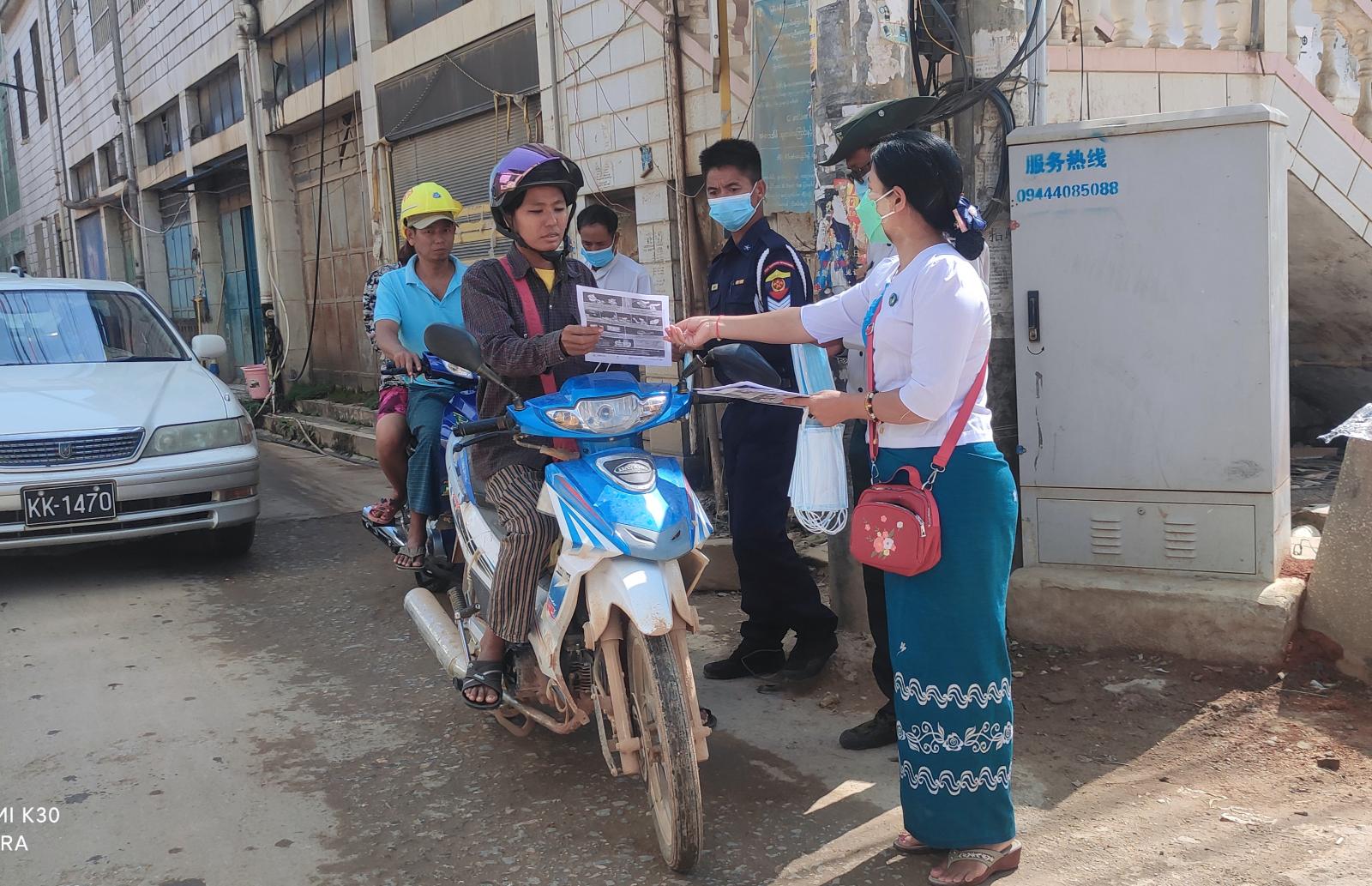 ရှမ်းပြည်နယ်(မြောက်ပိုင်း)၊ ကိုးကန့်ကိုယ်ပိုင်အုပ်ချုပ်ခွင့်ရဒေသ၊ လောက်ကိုင်မြို့၌ ကိုဗစ်-၁၉ မျိုးကွဲသစ် အိုမီခရွန်ရောဂါ တားဆီးကာကွယ်ထိန်းချုပ်ရေးလုပ်ငန်းများကို အရှိန်အဟုန်မပျက် ဆောင်ရွက်လျက်ရှိရာ ဒေသခံပြည်သူများကို ကိုဗစ်-၁၉ရောဂါ မျိုးရိုးဗီဇပြောင်းစောင့်ကြပ် ထိန်းချုပ် နိုင်ရေးနှင့် နေအိမ်ပြင်ပသို့ ထွက်ခွါသည့်အခါတိုင်း ပါးစပ်နှင့် နှာခေါင်းစည်း Mask များကို စနစ်တကျ တပ်ဆင်သည့် အလေ့အကျင့်ကောင်းများကို လိုက်နာကျင့်သုံးဆောင်ရွက်နိုင်ရန် ရည်ရွယ်၍ မြို့နယ် ကိုဗစ်-၁၉ရောဂါ ကာကွယ်ရေးနှင့် အရေးပေါ်တုံ့ပြန်ရေးကော်မတီ၏ ဦးဆောင်မှုဖြင့် လောက်ကိုင်မြို့ အတွင်း လူစည်ကားရာနေရာများတွင် အသိပညာပေးလုပ်ငန်းများကို ယနေ့နံနက် ၉နာရီခွဲအချိန်က စဉ်ဆက်မပြတ်ဆောင်ရွက်လျက်ရှိကြောင်း သိရသည်။