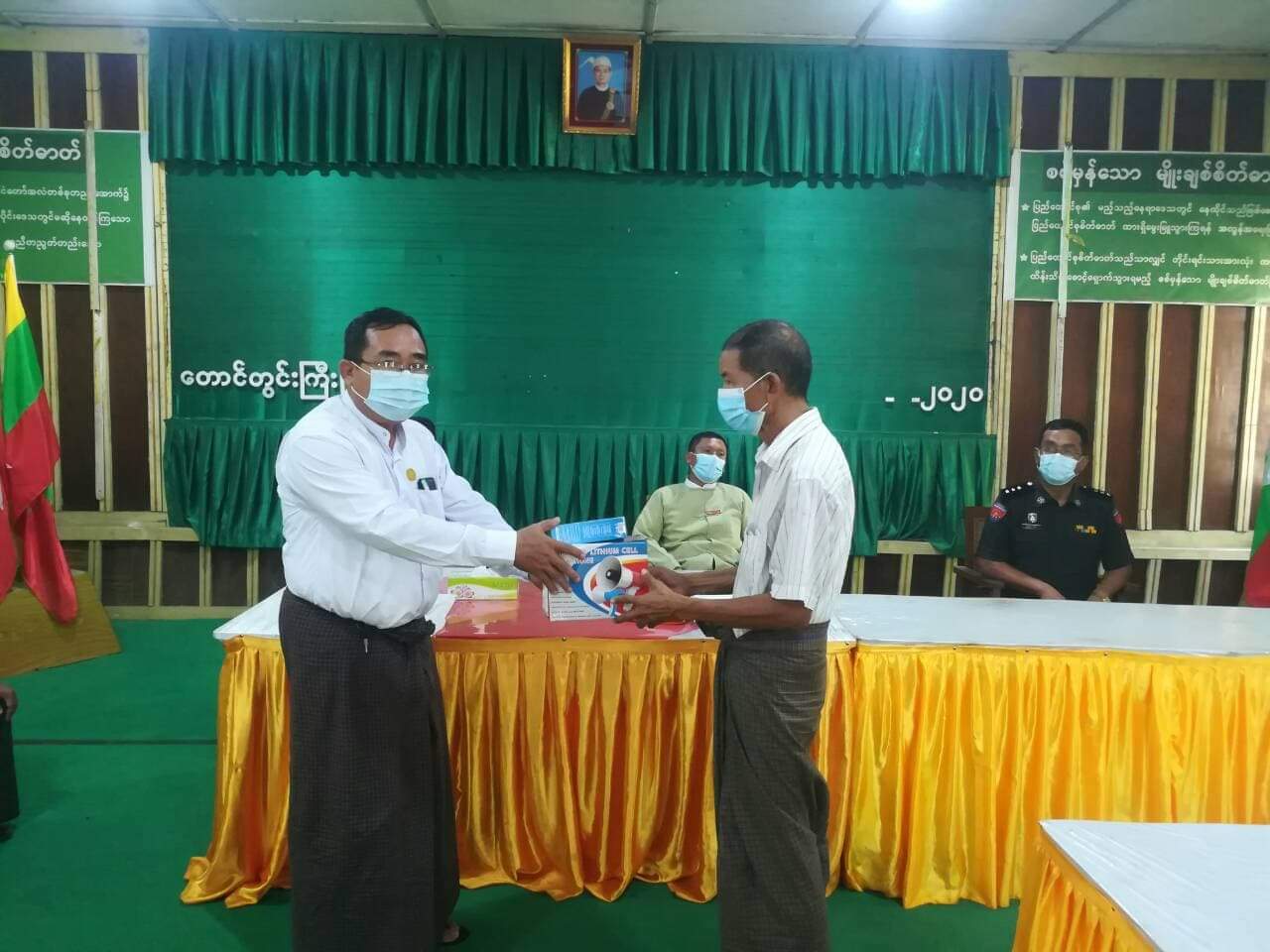အခမ်းအနားတွင် အမှတ်(၂)တိုင်းဒေသကြီး လွှတ်တော်ကိုယ်စားလှယ် ဦးဝင်းမြင်လှိုင်က အမှာစကားပြောကြားပြီး မြို့နယ် အုပ်ချုပ်ရေးမှူး ဦးအောင်မြင်က ထောက်ပံ့ငွေများ ပေးအပ်ရခြင်းနှင့် ပတ်သက်၍ ရှင်းလင်းပြောကြားသည်။