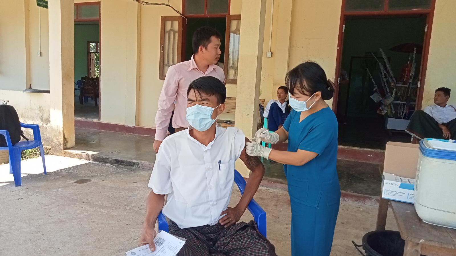 ကရင်ပြည်နယ်၊ ဘားအံခရိုင်၊ ရှမ်းရွာသစ်မြို့တွင် ကိုဗစ်-၁၉ ရောဂါ ကာကွယ်ဆေးအကြိမ်ပြည့် ထိုးနှံပြီးစီးမှုကာလ (၄) လအထက်ရှိသော နိုင်ငံ့ဝန်ထမ်းများနှင့် အတူနေမိသားစုဝင်များအား ထပ်ဆောင်းကာကွယ်ဆေးအဖြစ် ထိုးနှံခြင်းလုပ်ငန်းကို ယနေ့နံနက် (၁၁)နာရီအချိန်က အထွေထွေအုပ်ချုပ်ရေးဦးစီး ဌာနရုံးတွင် ထိုးနှံပေးခဲ့ကြောင်း သိရသည်။