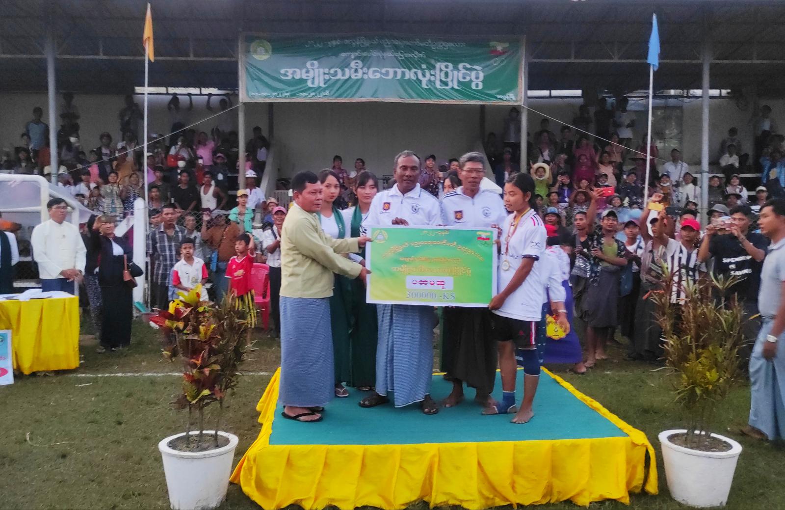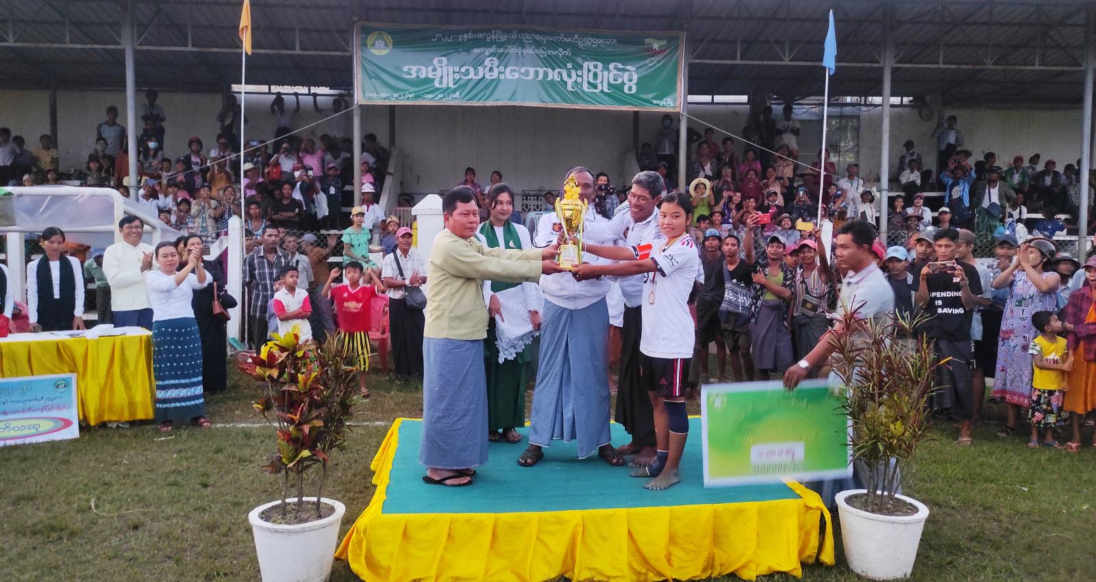 ဗိုလ်လုပွဲတွင် ရေလဲတိုက်နယ် ဘောလုံးအသင်းနှင့် မြို့မတိုက်နယ် ဘောလုံးအသင်းတို့ ယှဉ်ပြိုင် ကစားကြရာ ရေလဲတိုက်နယ် ဘောလုံးအသင်းက အနိုင်ရရှိခဲ့သည်။ ယင်းနောက် ဆုပေးပွဲ အခမ်းအနားကို ဆက်လက်ကျင်းပရာ တတိယဆုရရှိသော သာဒုချောင်း တိုက်နယ်ဘောလုံးအသင်း၊ ရှေ့တန်းအကောင်းဆုံးဆု၊ အလယ်တန်း အကောင်းဆုံးဆု၊ နောက်တန်း အကောင်းဆုံးဆု၊ ဂိုးသမားအကောင်းဆုံးဆု၊ ပွဲစဉ်တလျှောက် အကောင်းဆုံး အားကစားသမားဆု ရရှိခဲ့သည့် အားကစားသမားများ၊ ဒုတိယဆုရရှိသော မြို့မတိုက်နယ်ဘောလုံးအသင်းနှင့် ပထမဆုရရှိသော ရေလဲတိုက်နယ်ဘောလုံးအသင်းအား မြို့နယ်စီမံအုပ်ချုပ်ရေးအဖွဲ့ဥက္ကဋ္ဌ ဦးထွန်းထွန်းလင်းနှင့် တာဝန်ရှိသူများက ဆုများအသီးသီး ပေးအပ်ချီးမြှင့်ခဲ့ကြသည်။