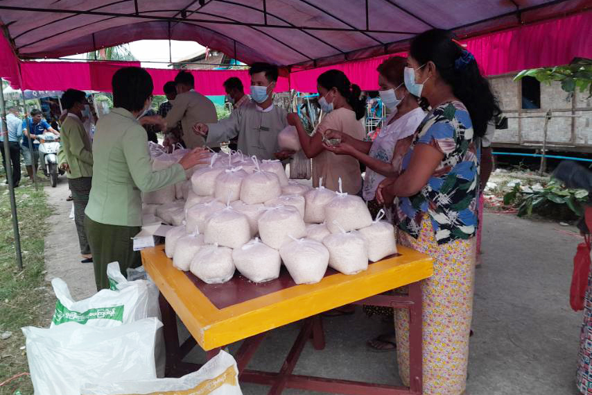 အခြေခံစားကုန်(၅)မျိုးကို မြို့နယ်စီမံအုပ်ချုပ်ရေးအဖွဲ့နှင့် ဌာနဆိုင်ရာများ၊ ဆန်ကုန်သည်များအသင်း၊ ဆီလုပ်ငန်းရှင်များအသင်းနှင့် ငါးလုပ်ငန်းအဖွဲ့ချုပ်တို့ ပူးပေါင်း၍ အခြေခံလူတန်းစားများအား ရောင်းချပေးခြင်းဖြစ်ကြောင်း သိရသည်။
