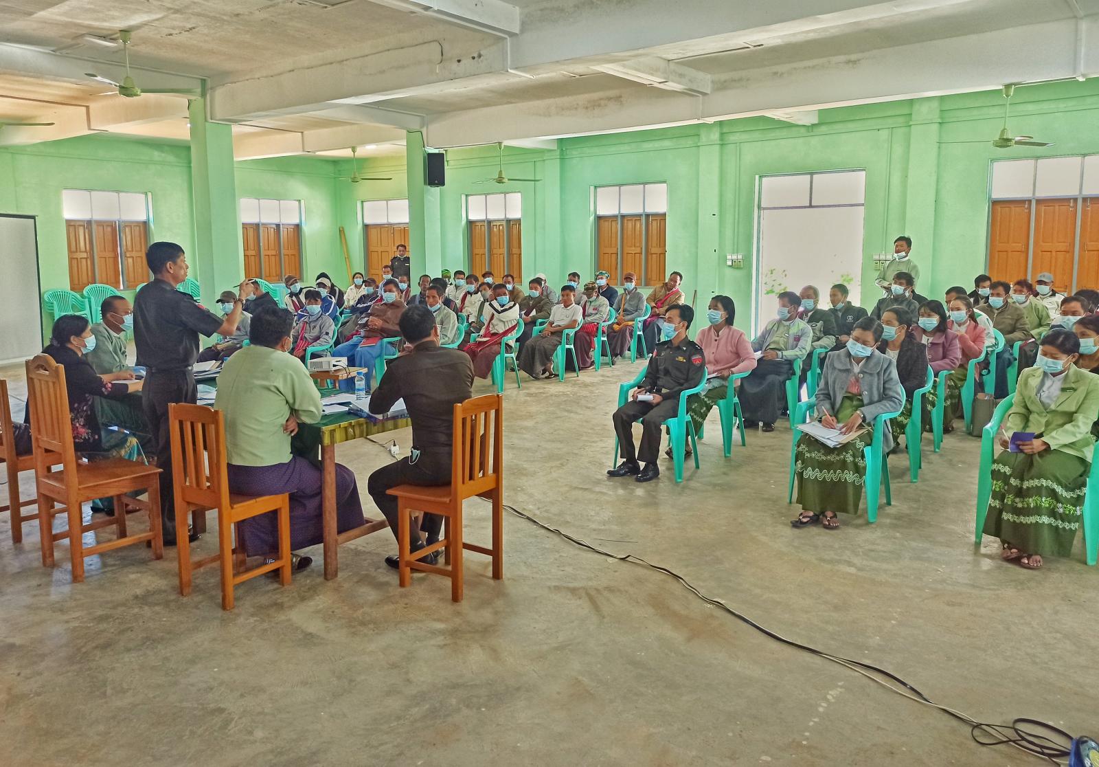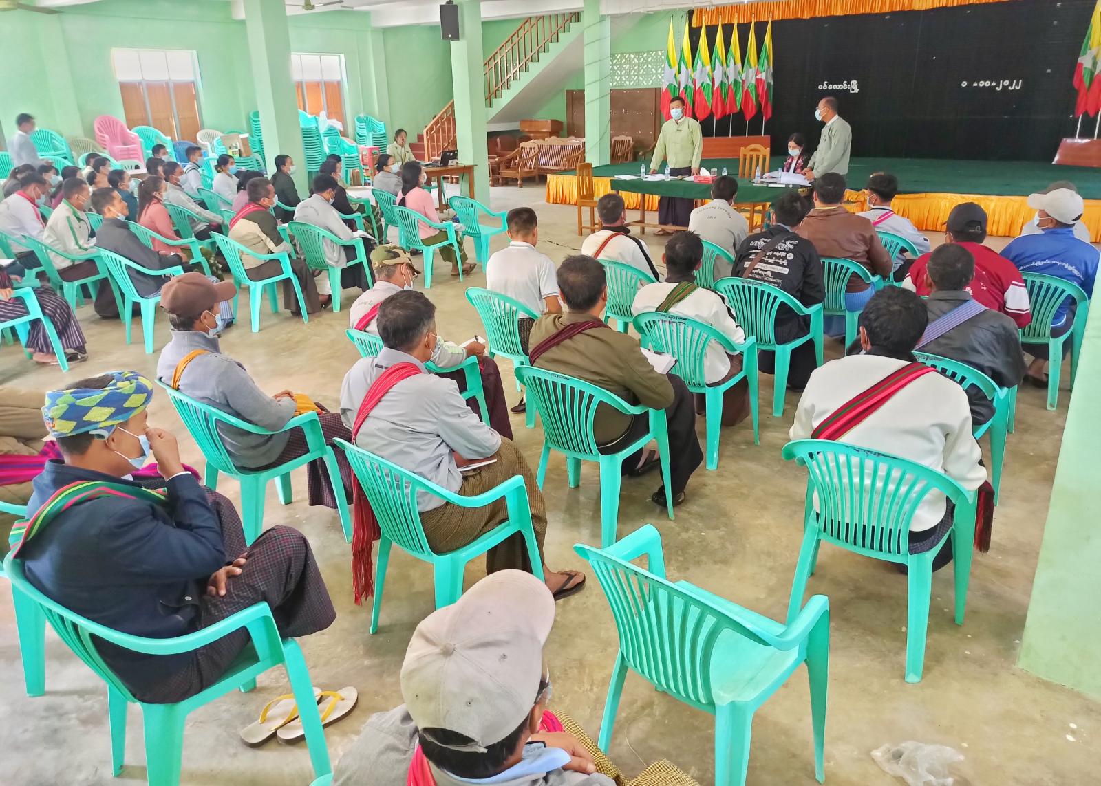 ထို့နောက် အစည်းအဝေးသို့ တက်ရောက်လာကြသည့် ရပ်ကွက်/ကျေးရွာအုပ်စု အုပ်ချုပ်ရေးမှူးများ၊ စာရေးဝန်ထမ်းများက မြေပြင်တွင် ကြုံတွေ့နေရသည့် အိမ်ထောင်စုစာရင်း၊ နိုင်ငံသားစိစစ်ရေးကတ်ပြား အခြေအနေများ၊ ပါတီစုံဒီမိုကရေစီ ရွေးကောက်ပွဲတွင် အသုံးပြုမည့် မဲရုံများအခြေအနေများနှင့်ပတ်သက်၍ သိရှိလိုသည်များကို တင်ပြဆွေးနွေးခဲ့ကြပြီး၊ တင်ပြ ဆွေးနွေးချက်များအပေါ် သက်ဆိုင်ရာတာဝန်ရှိသူများက ပြန်လည်ဖြေကြားပေးခဲ့ကြောင်း သိရသည်။